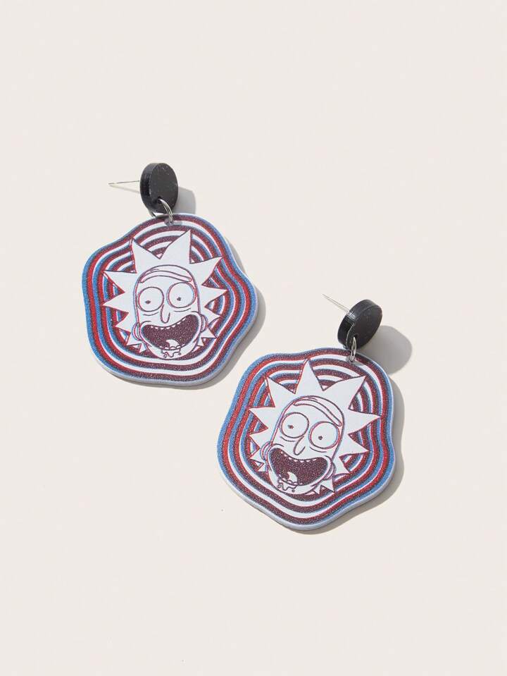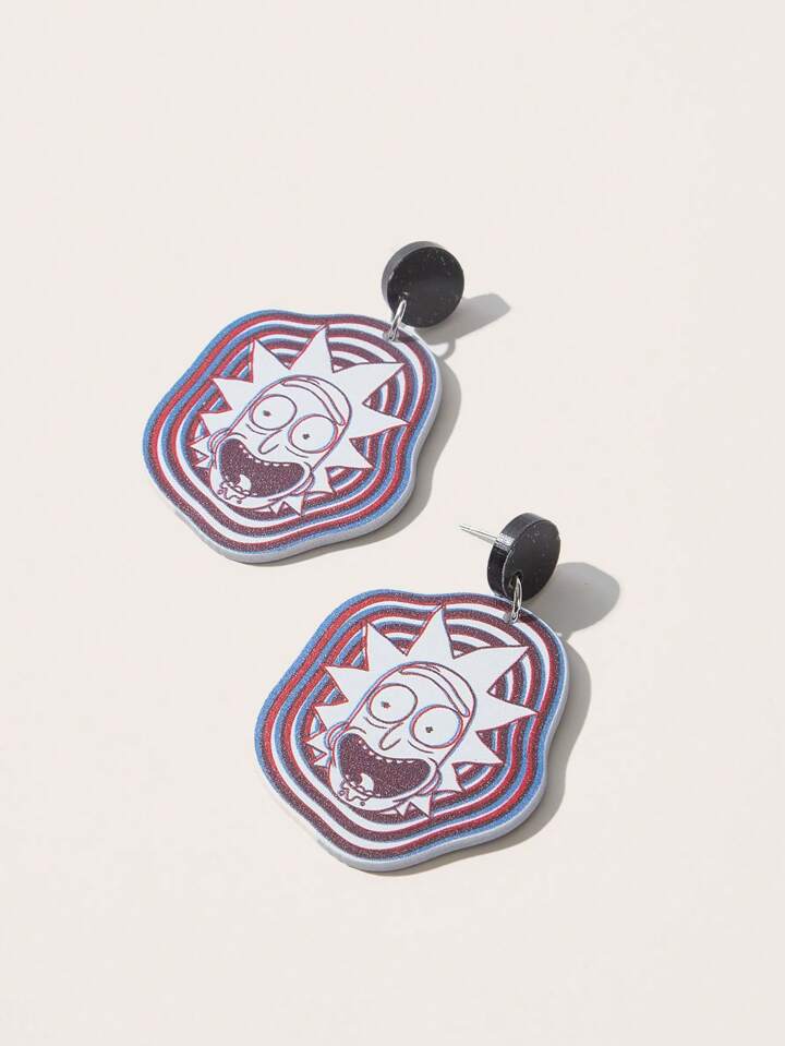 Rick and Morty | ROMWE 2 piezas Pendientes largos dulce acrílico con estampado de figura de dibujos animados para mujeres para decoración diaria