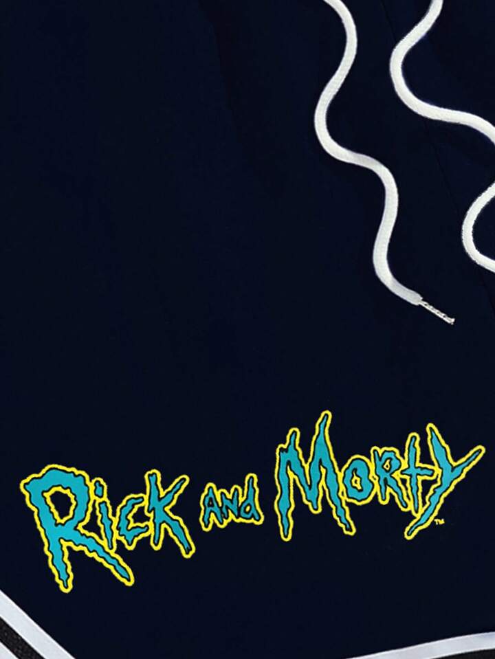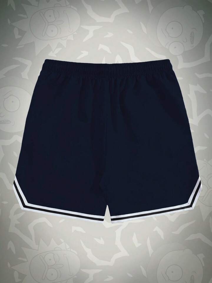 Rick and Morty | ROMWE Pantalones Cortos De Cintura Ajustable Para Hombre Con Diseño De Letra Y Caricatura
