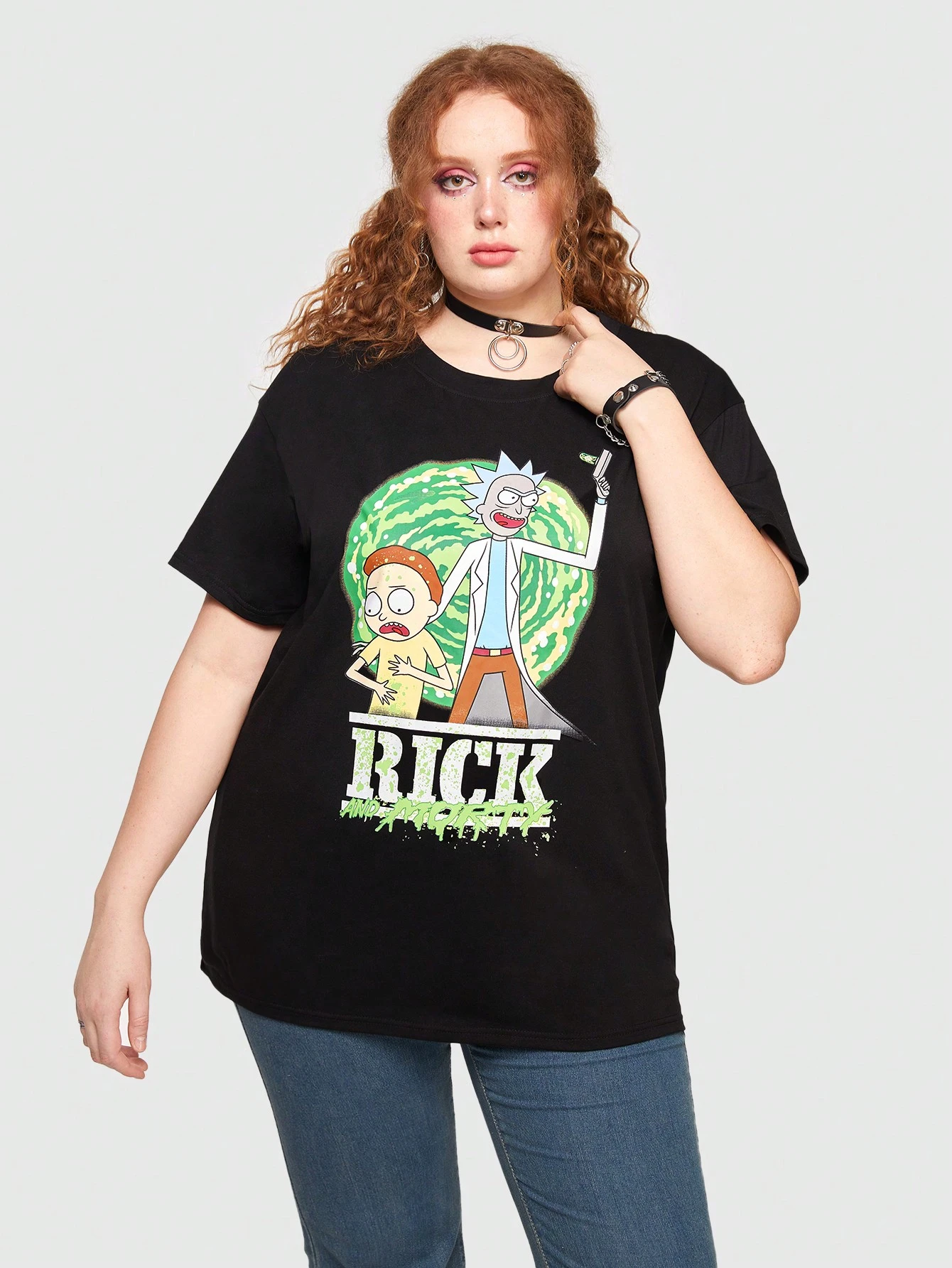 Rick and Morty | ROMWE Talla grande Camiseta con estampado de dibujos animados y letra