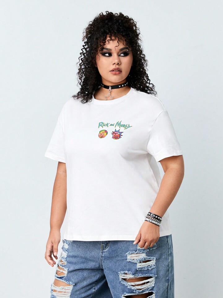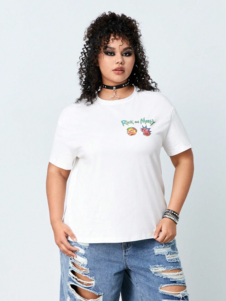 Rick and Morty | ROMWE Camiseta De Manga Corta Con Cuello Redondo Y Estampado De Dibujos Animados De Talla Grande