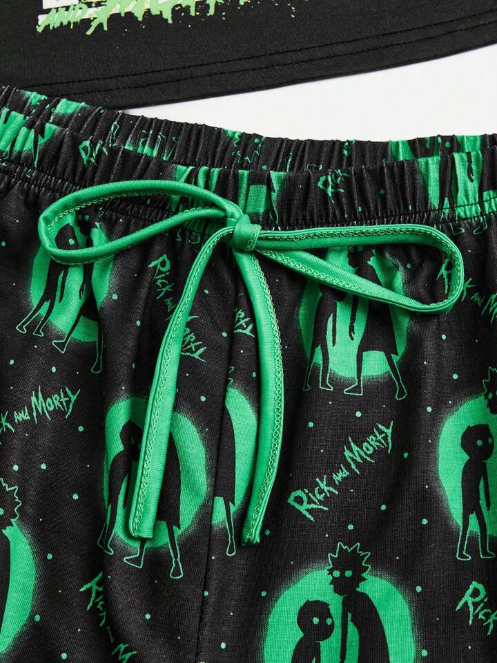 Rick and Morty | ROMWE Conjunto de pijama con gráfico para figura plus, ribete de contraste, para la escuela