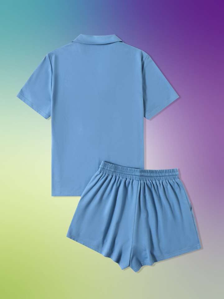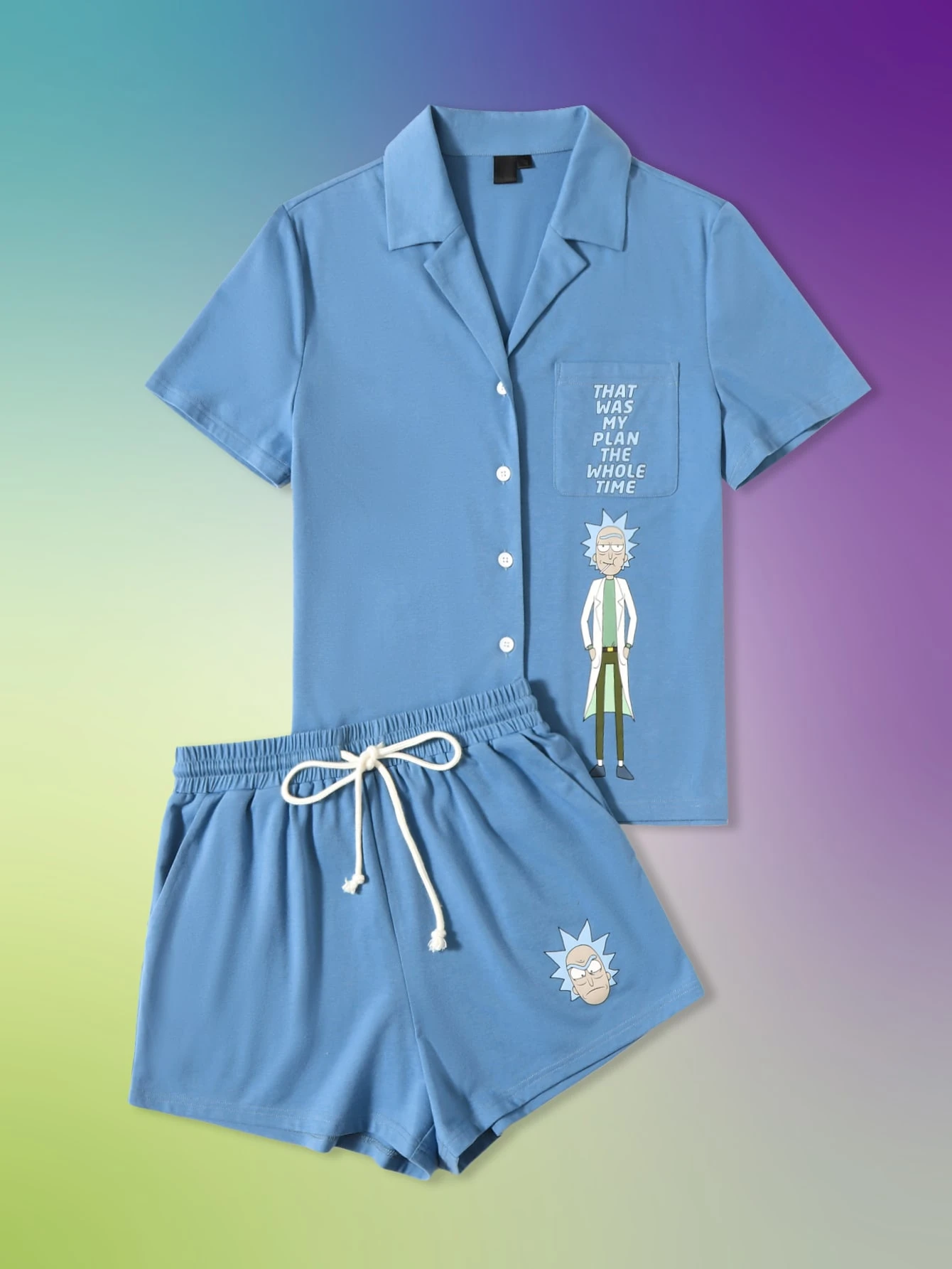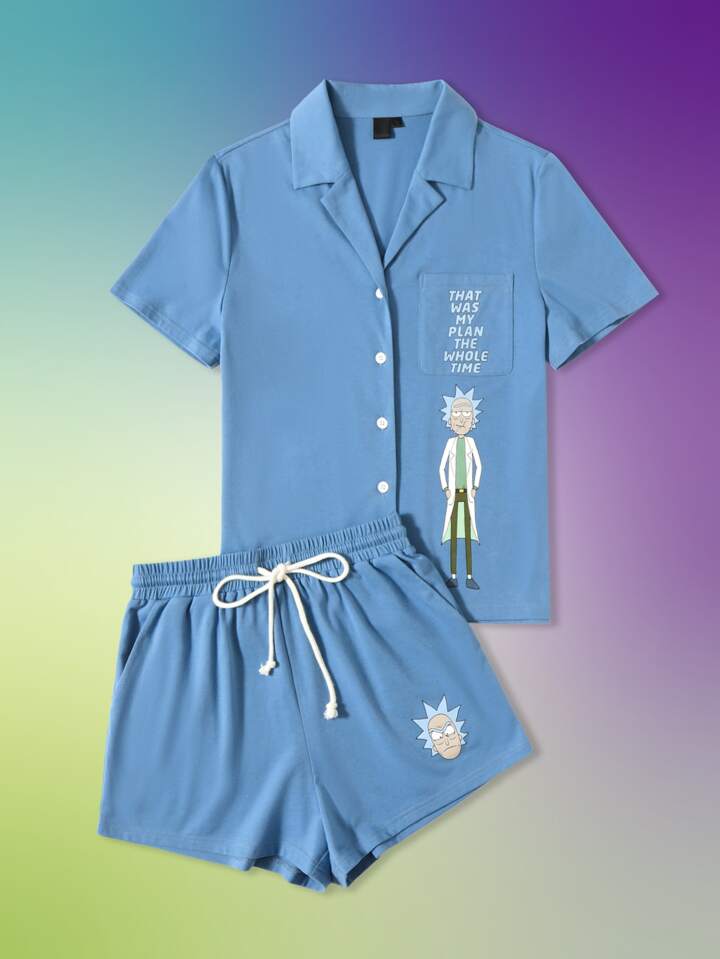 Rick and Morty | ROMWE Conjunto de pijama con slogan con estampado de dibujos animados con bolsillo con cordón