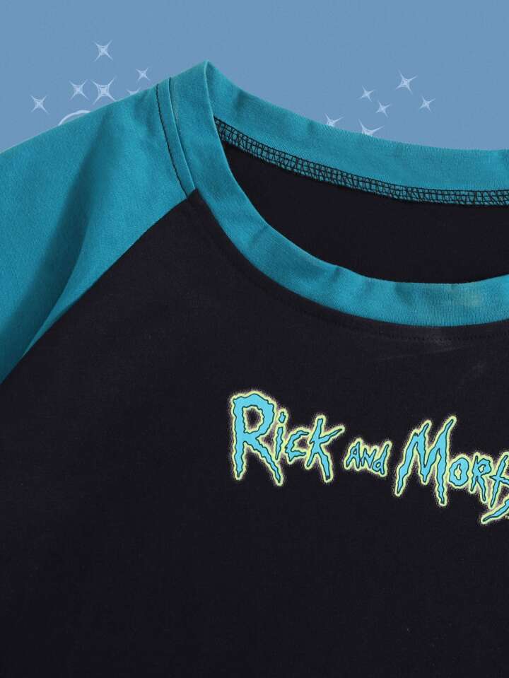 Rick and Morty | ROMWE Camiseta calle de color combinado con estampado de letra