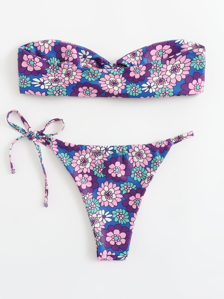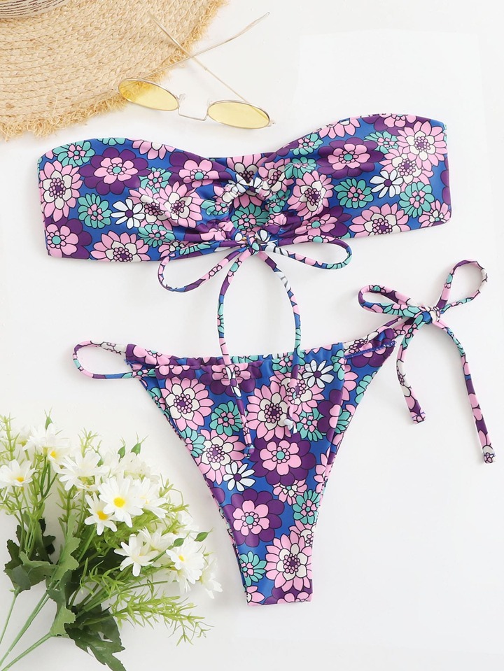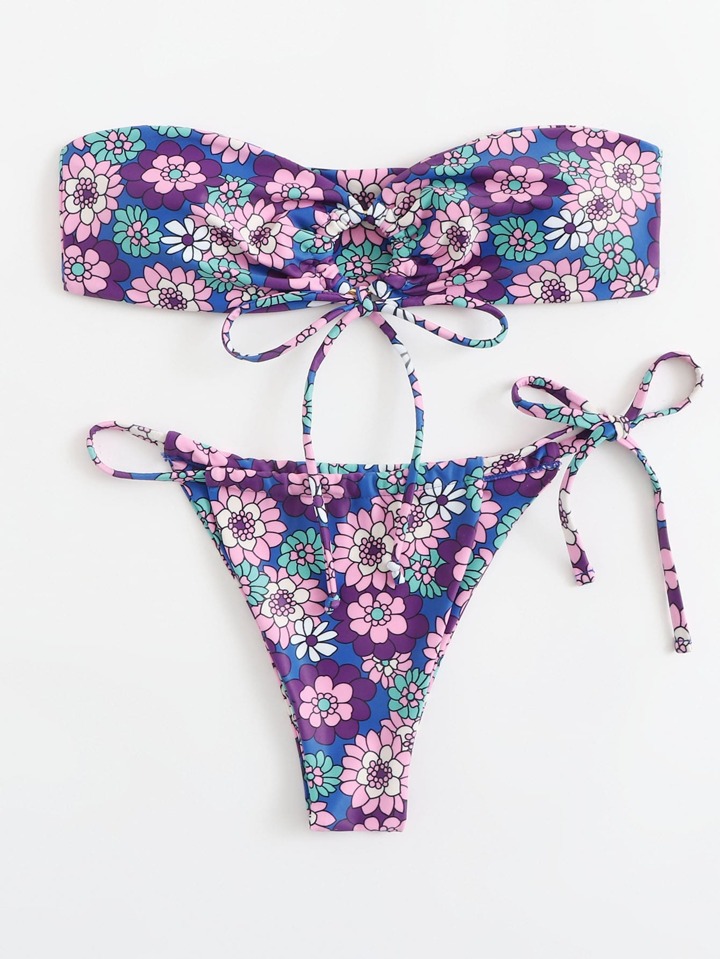Conjunto de bikini con anillo frontal, top sin tirantes, atado al cuello y tanga para el verano en la playa