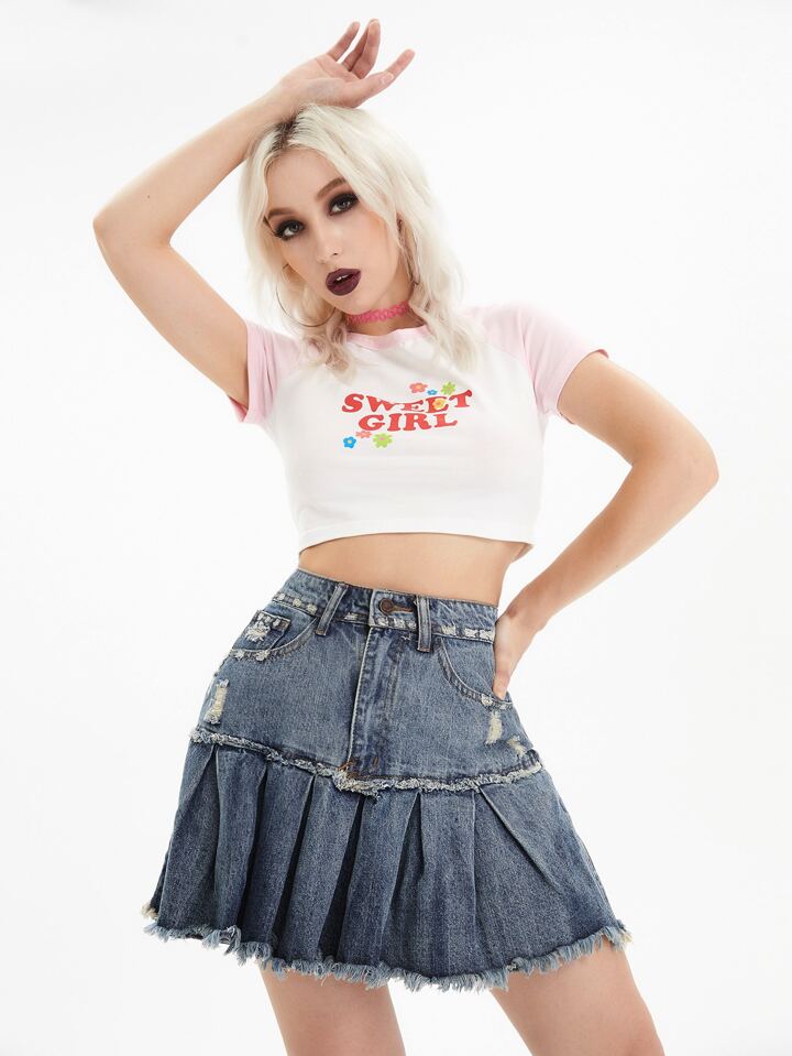 Falda en mezclilla roto bajo fruncido