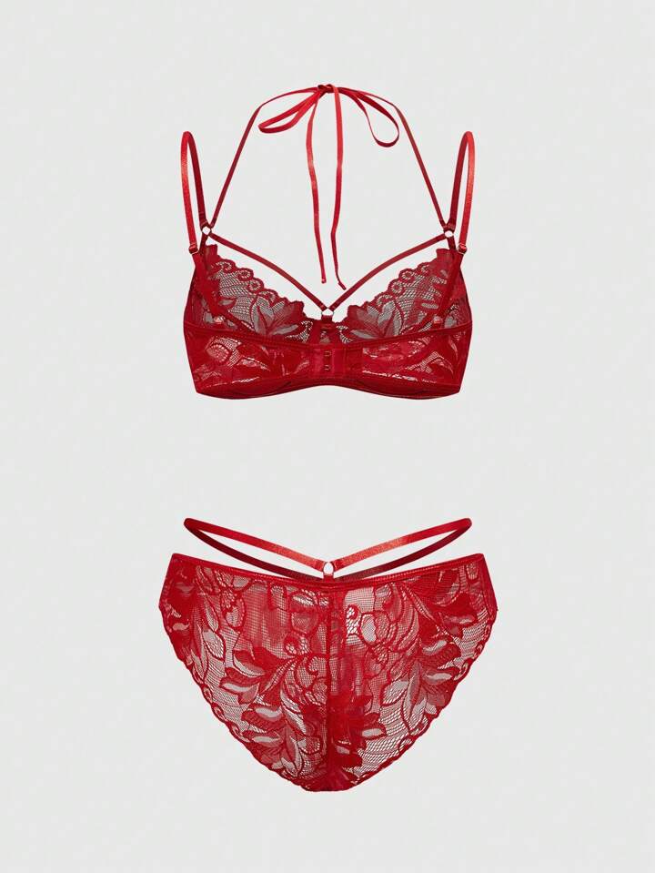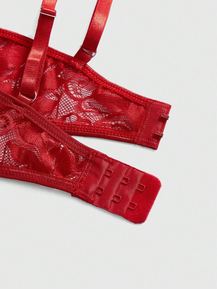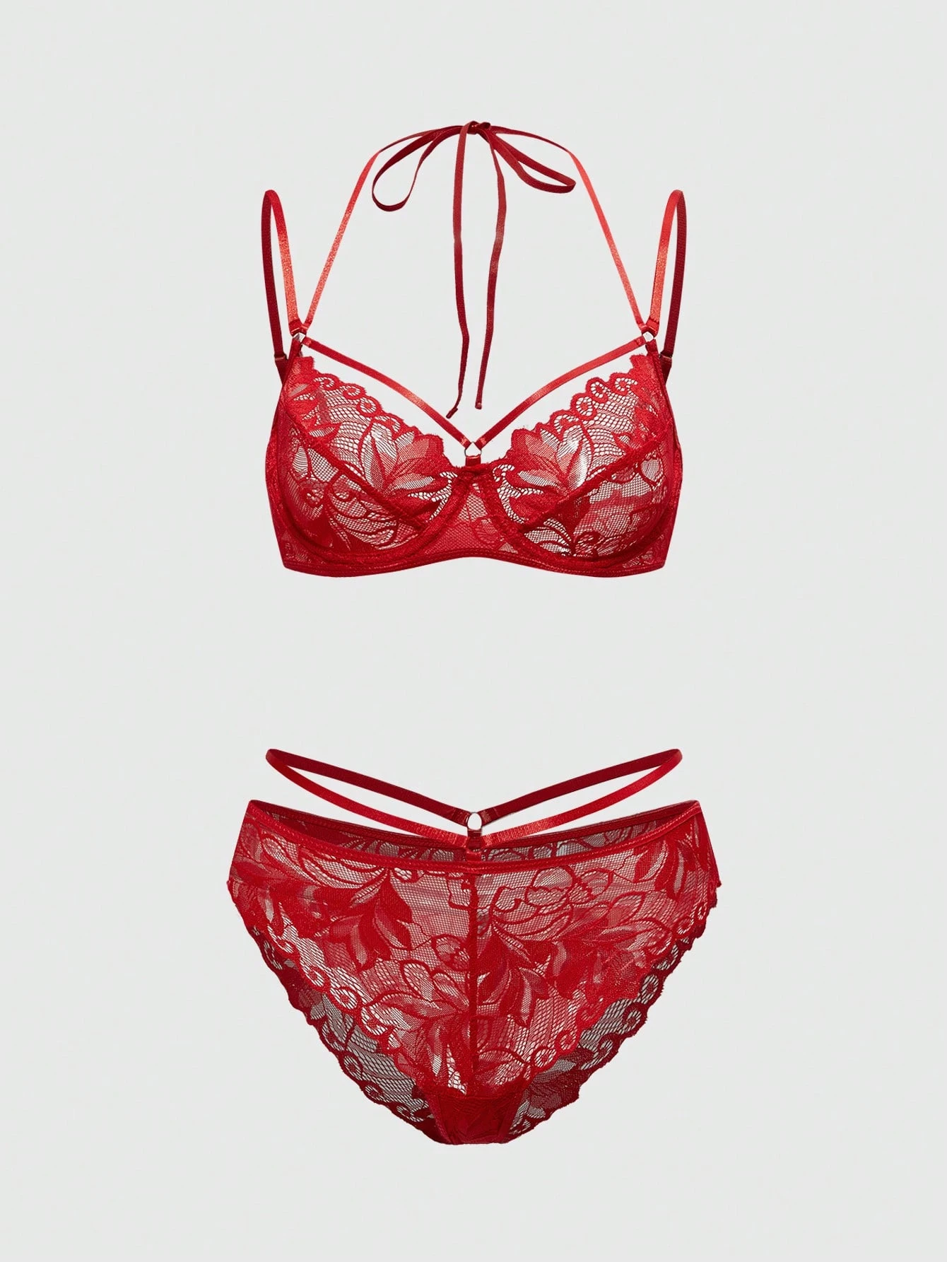 Conjunto de lencería romántica con sujetador con aros y pantys para mujer