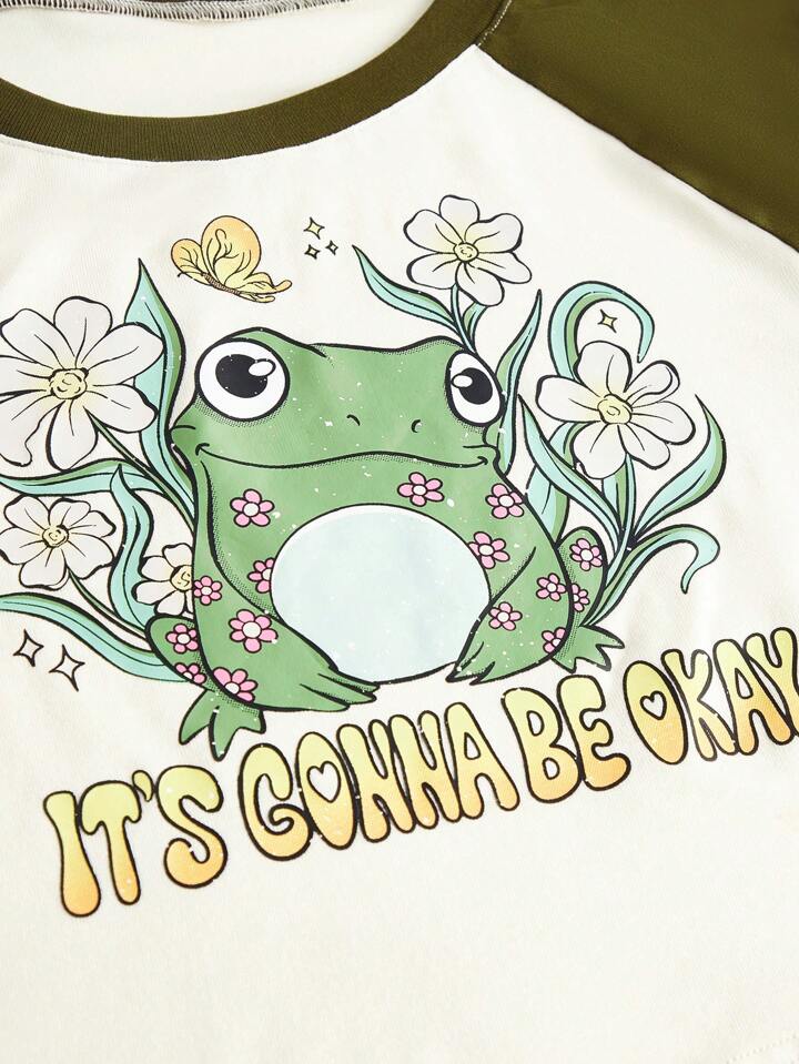 Rosie Camiseta con estampado de rana de dibujos animados de manga raglán