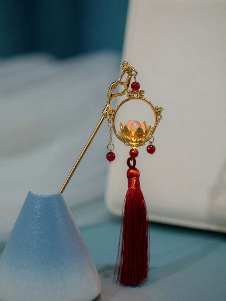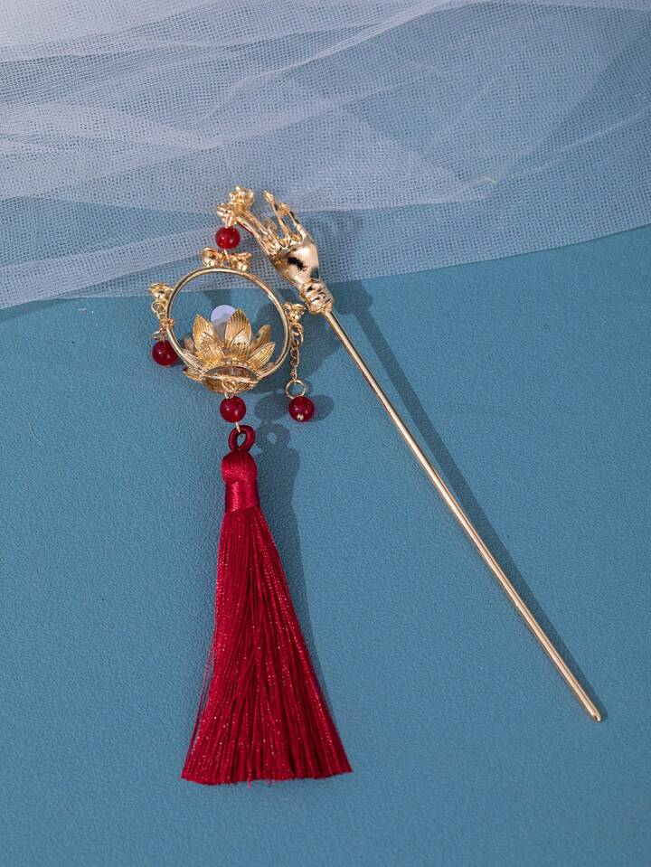 1 pieza de pasador de cabello con estilo chino, decorado con borlas y flores, para mujeres reales