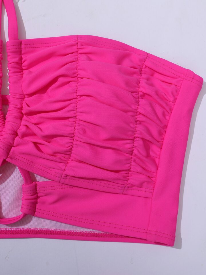 Conjunto de bikini de verano para playa con escote halter cruzado y fruncido, atado a los lados