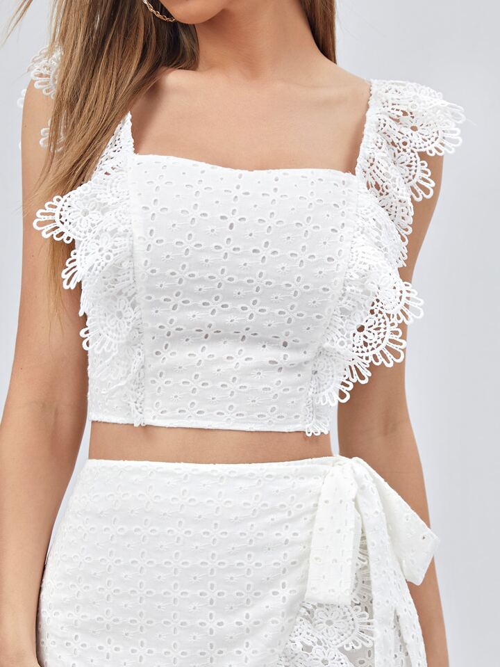 Conjunto top de tirantes ribete fruncido con falda con cordón lateral