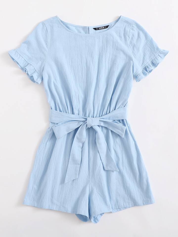 Mono con cinturón de espalda con abertura ribete con fruncido
