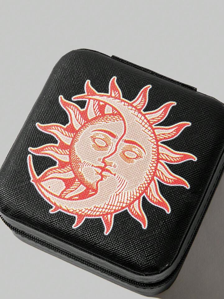 SKULL GRPHC 1 pieza Caja de almacenamiento de joya , dulce con patrón de sol y luna Organizador de joyas Caja de almacenamiento