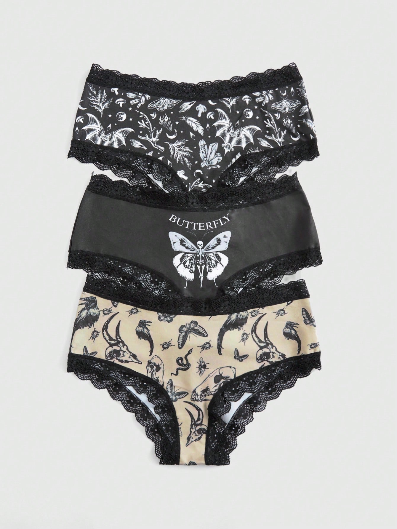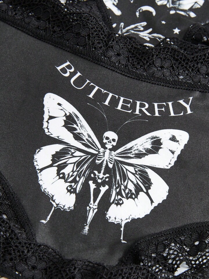 SKULL GRPHC 3 piezas/set Braguitas para mujeres con estampado de mariposa