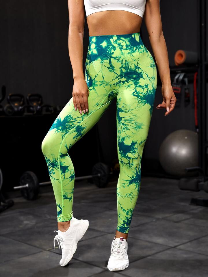 Leggings deportivos inconsútil de cintura ancha de tie dye
