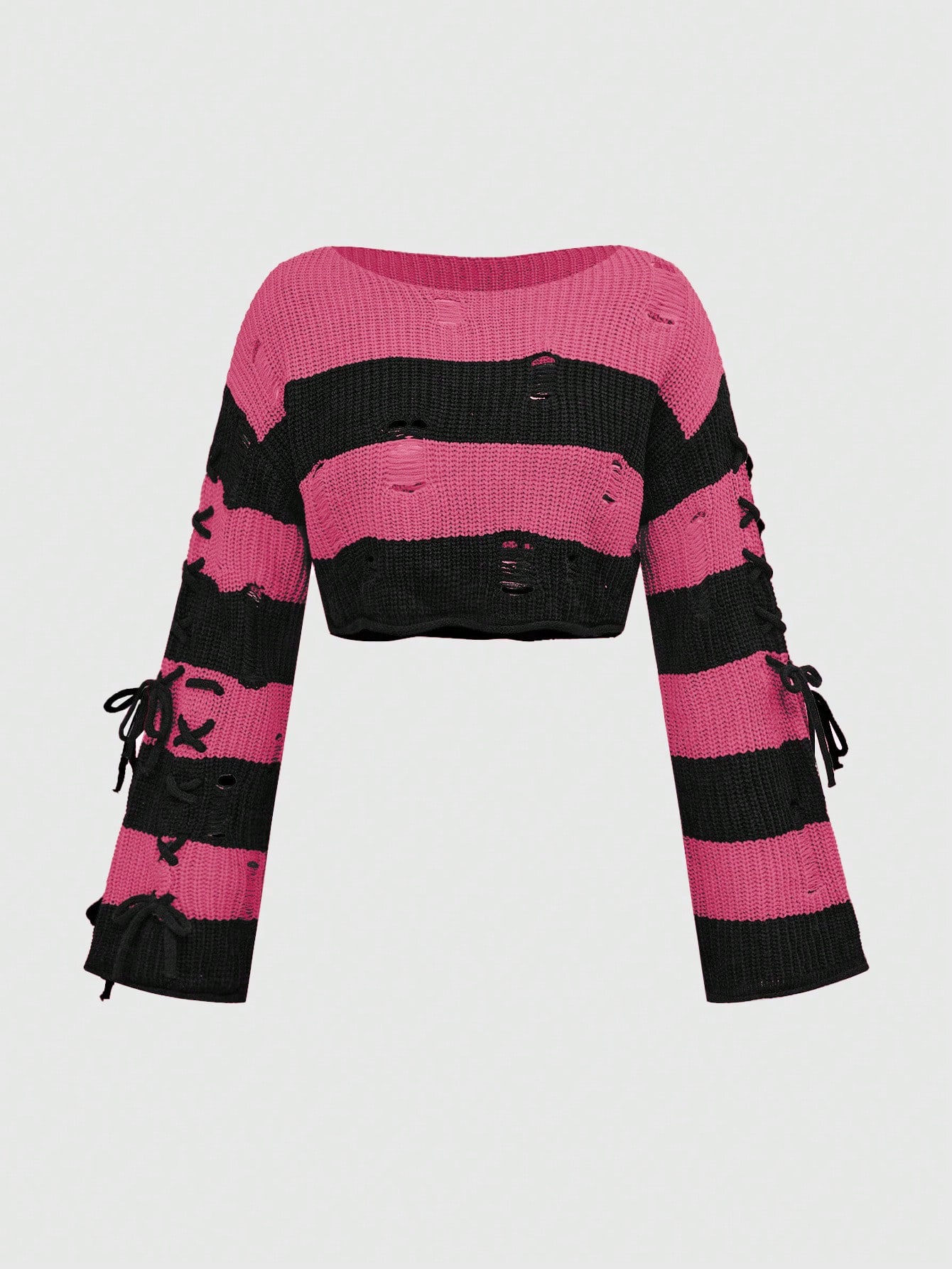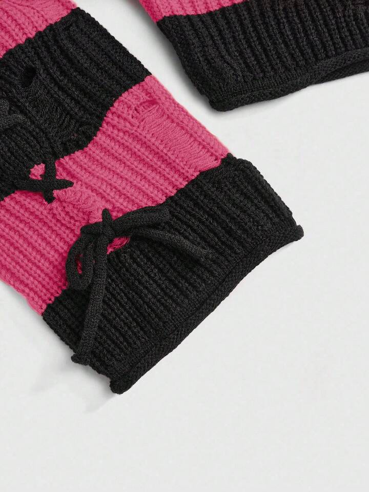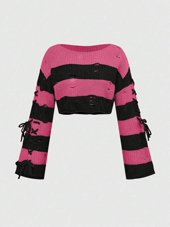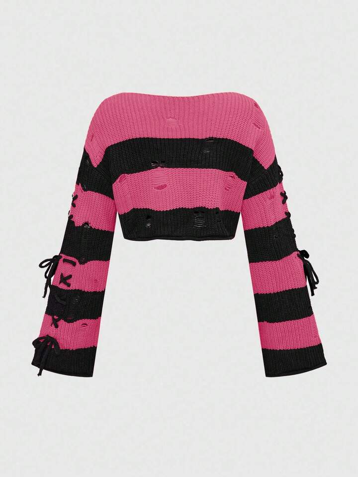 Top de punto corta con cordones laterales a rayas naranja y negro de Halloween