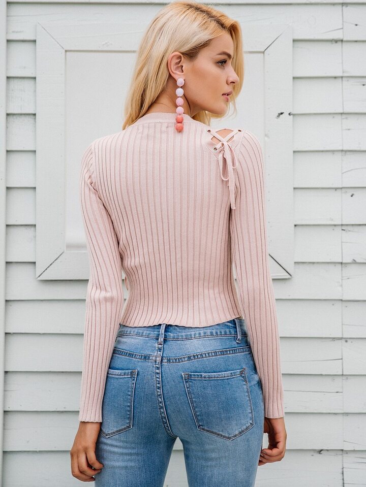 Simplee suéter tejido de canalé unicolor con cordón