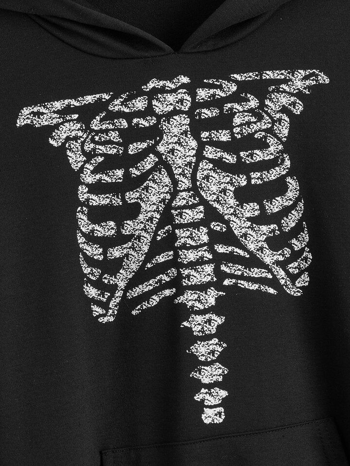Capucha con estampado de esqueleto con bolsillo de canguro