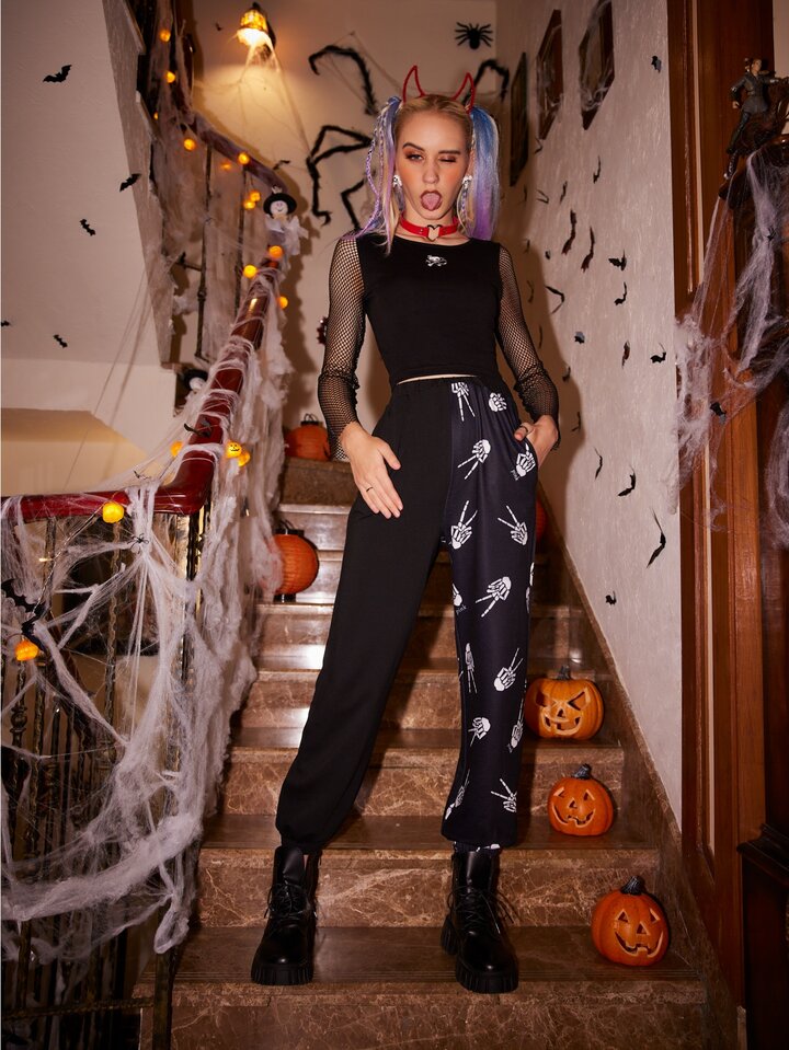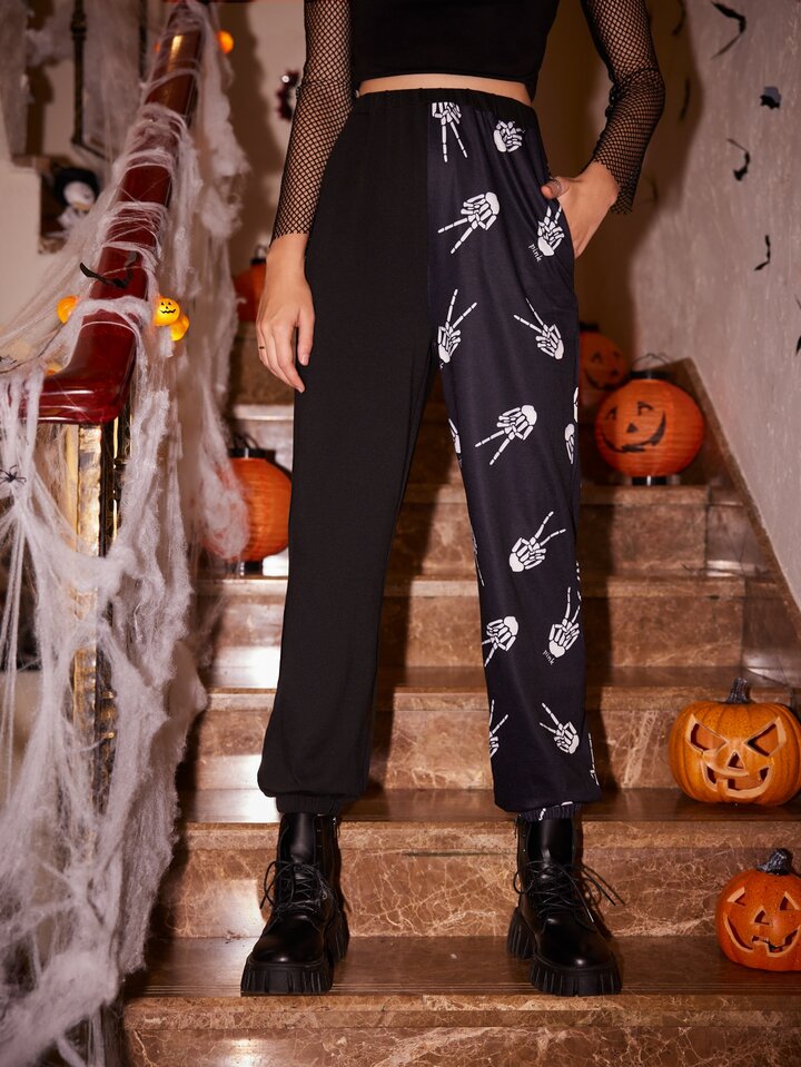Pantalones deportivos con estampado de esqueleto