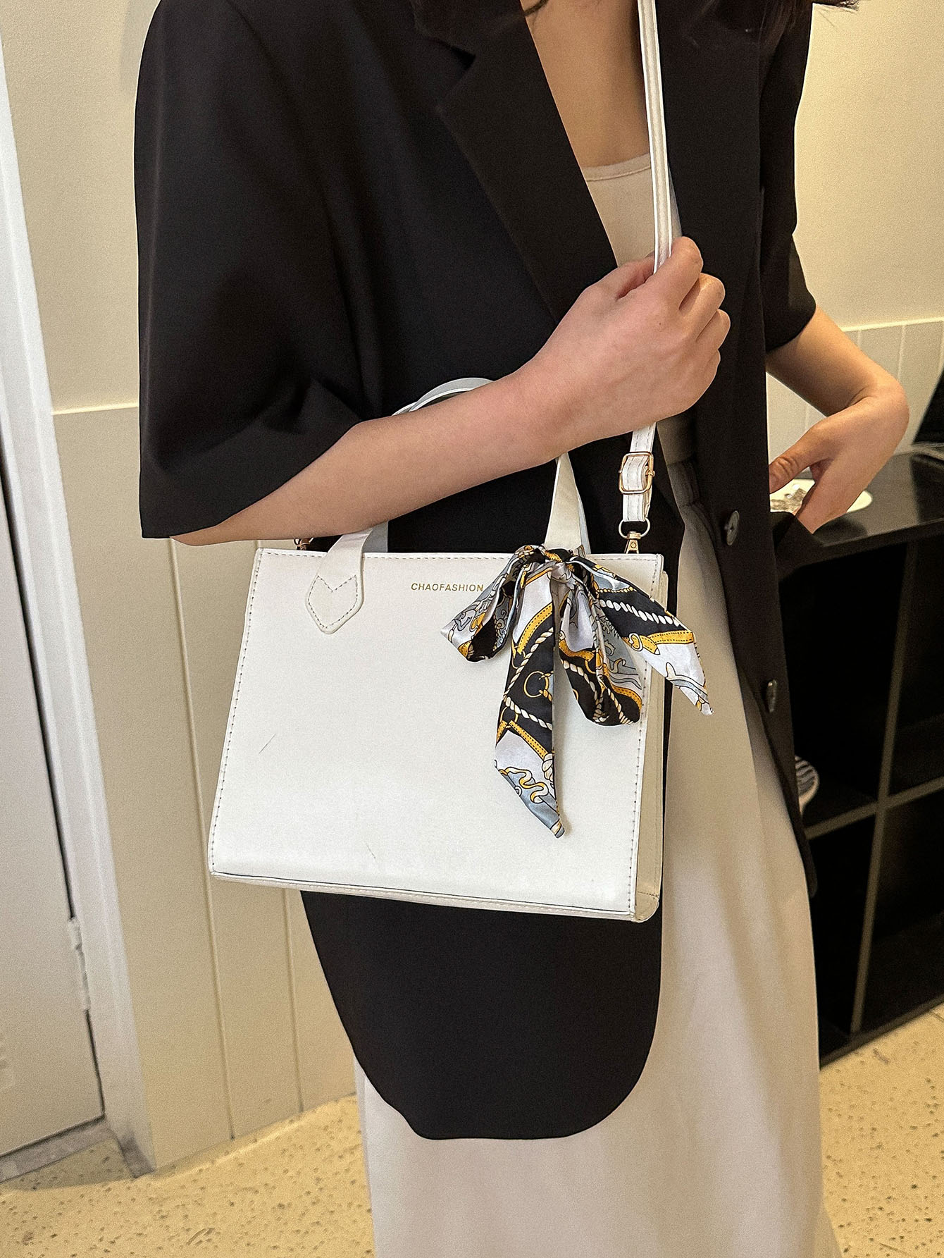Bolsa cuadrada con diseño de pañuelo doble asa