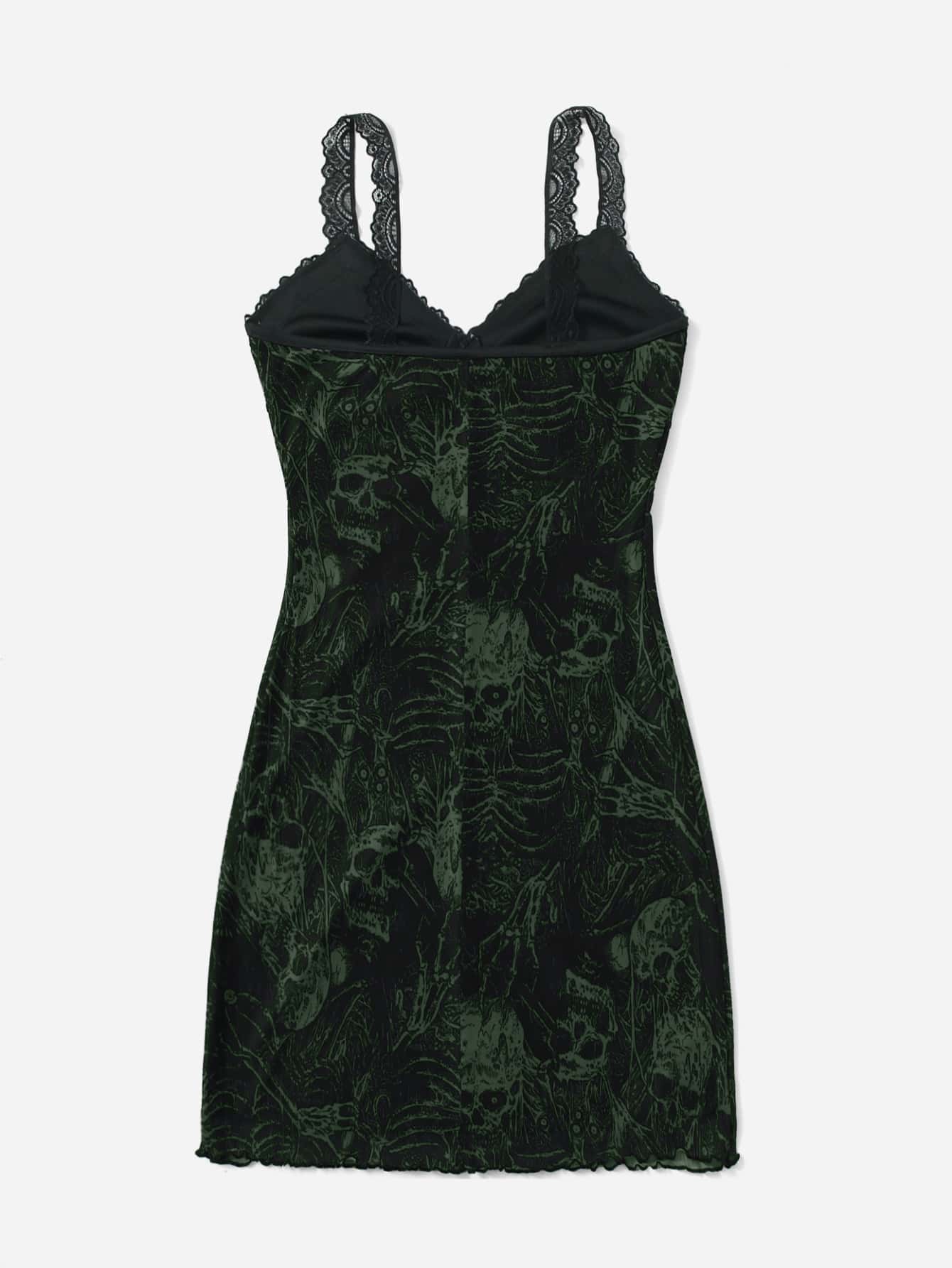Vestido de tirantes con estampado de cráneo con encaje en contraste
