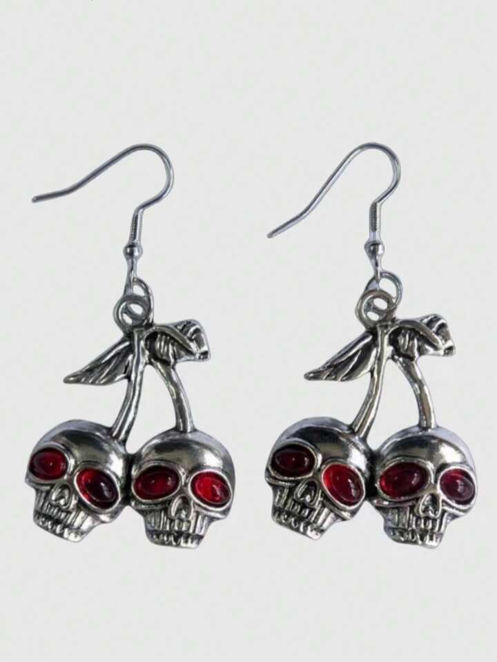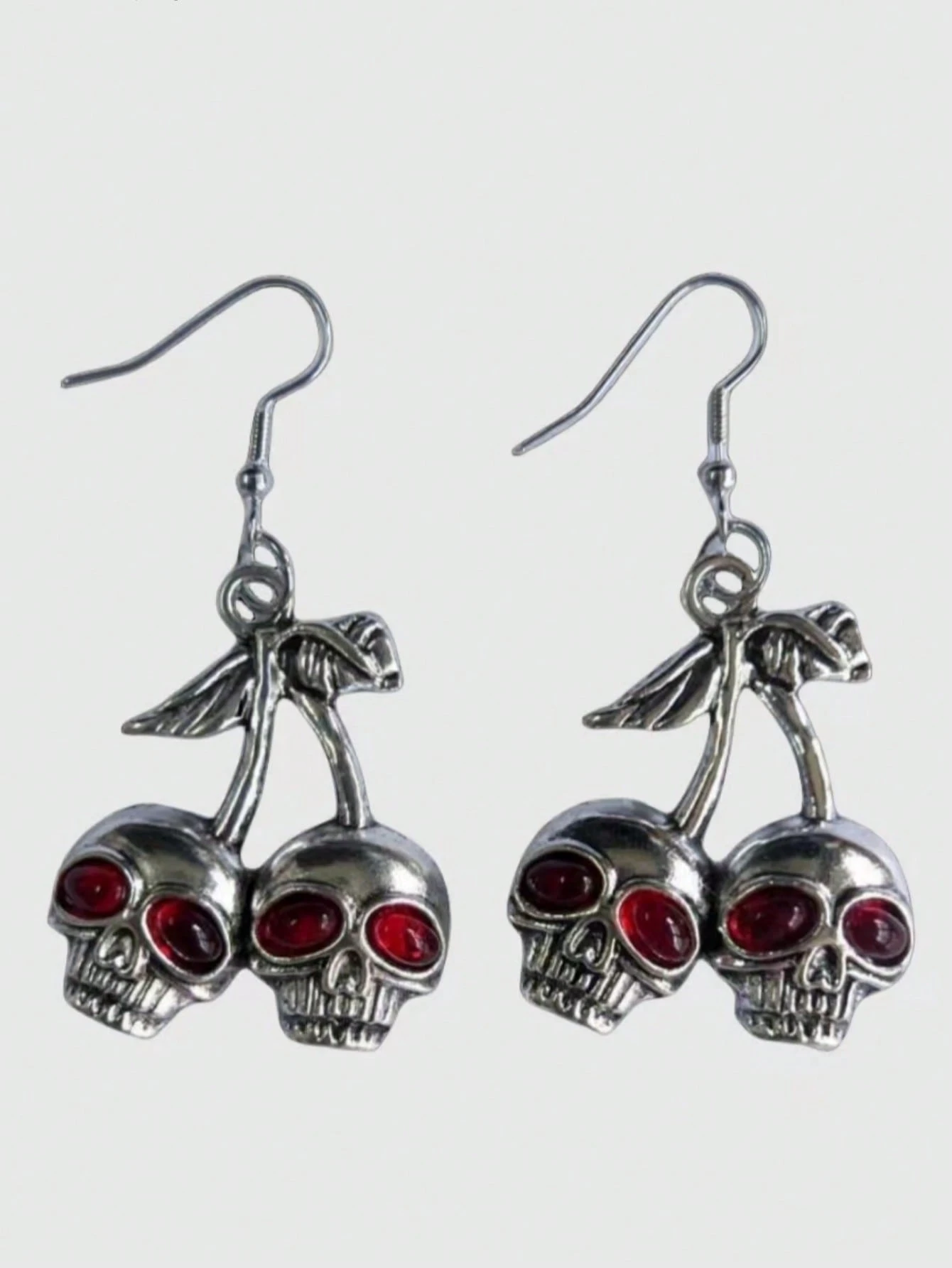 Goth Pendientes largos de cráneo cabeza detalle en forma de cereza estilo gótico