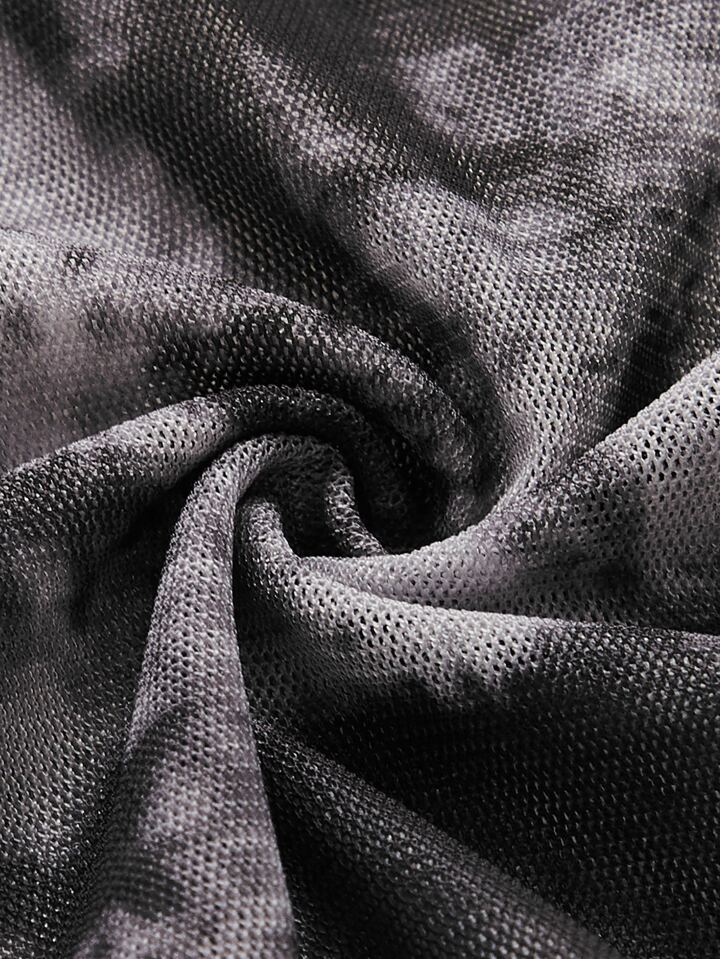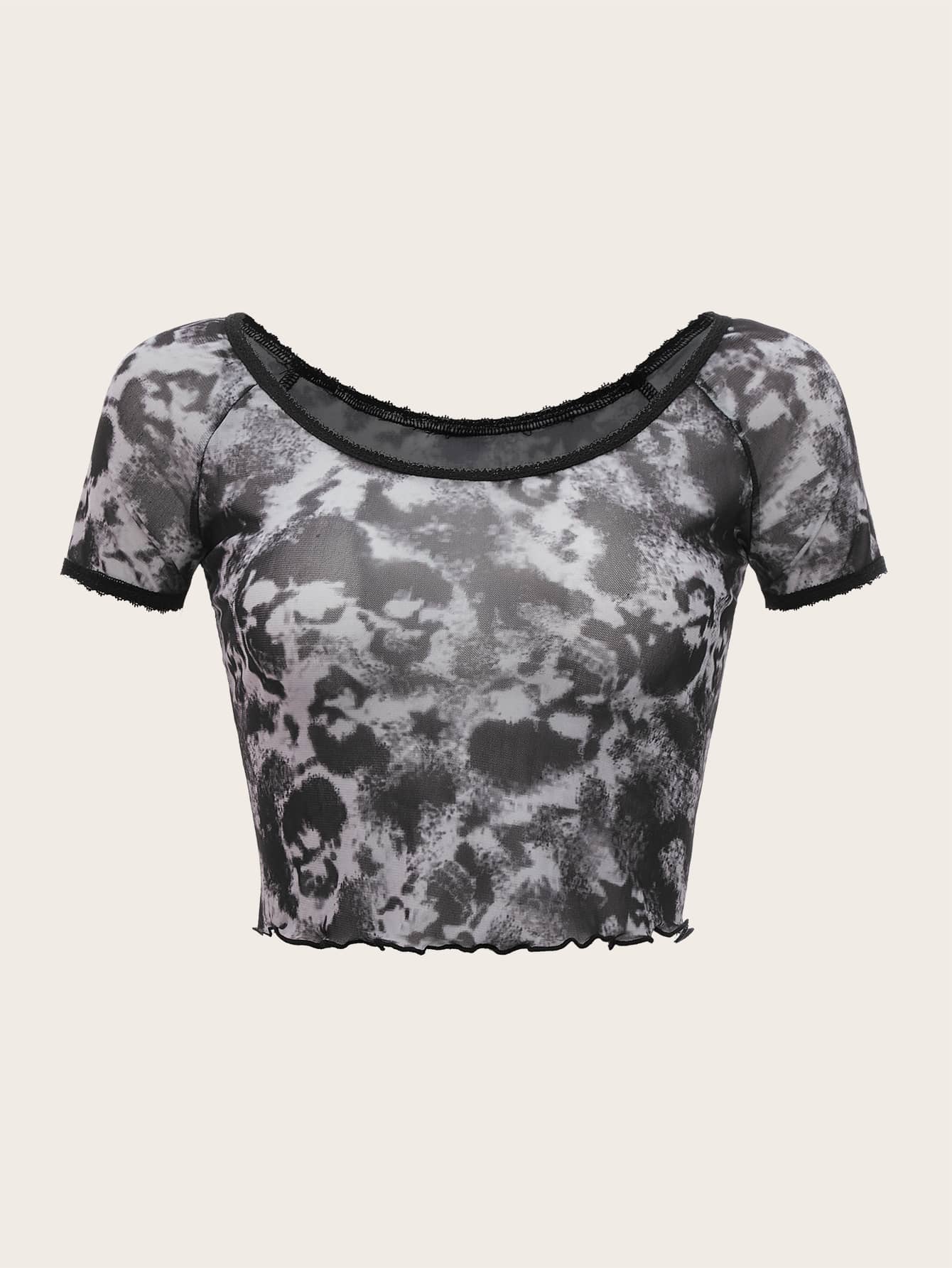 Top con patrón de cráneo ribete en forma de lechuga de malla
