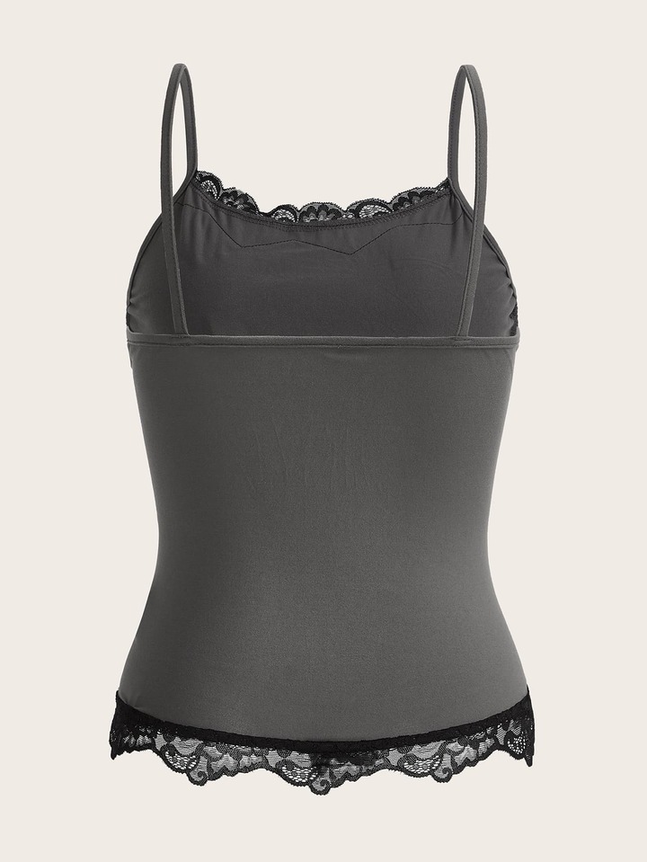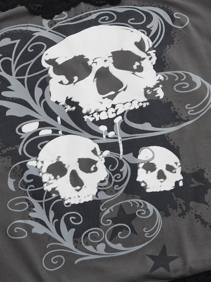 Top De Tirantes Con Impresión De Cráneo Y Encaje Contrastante