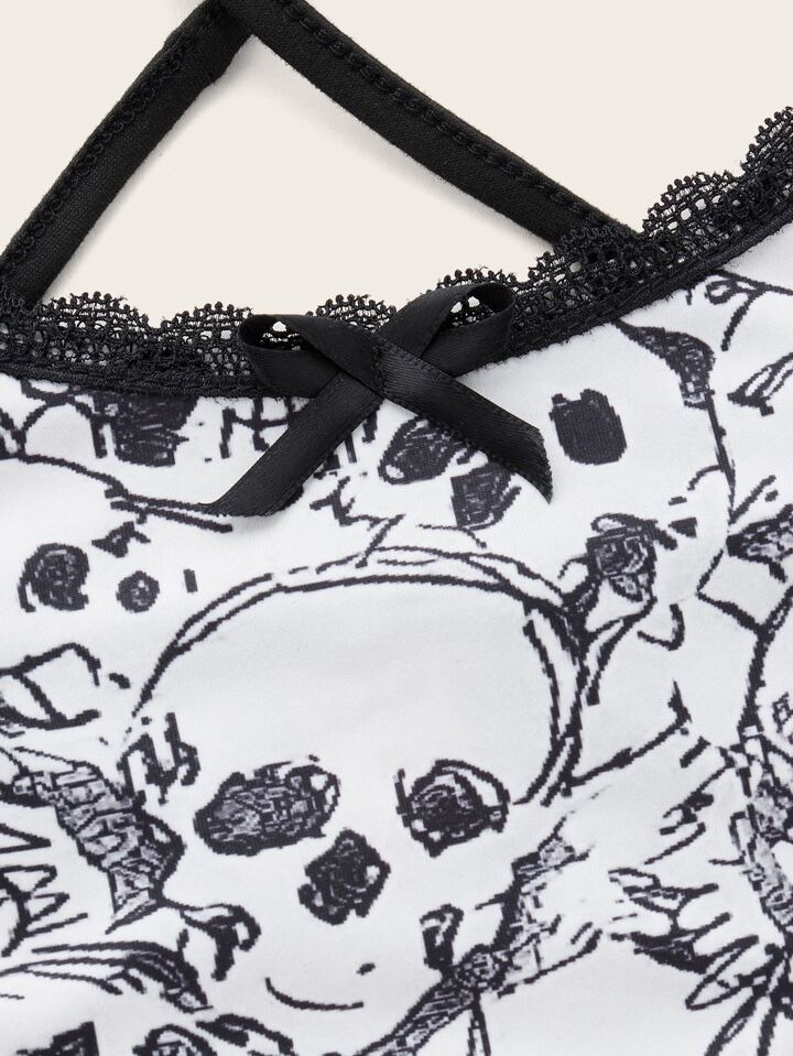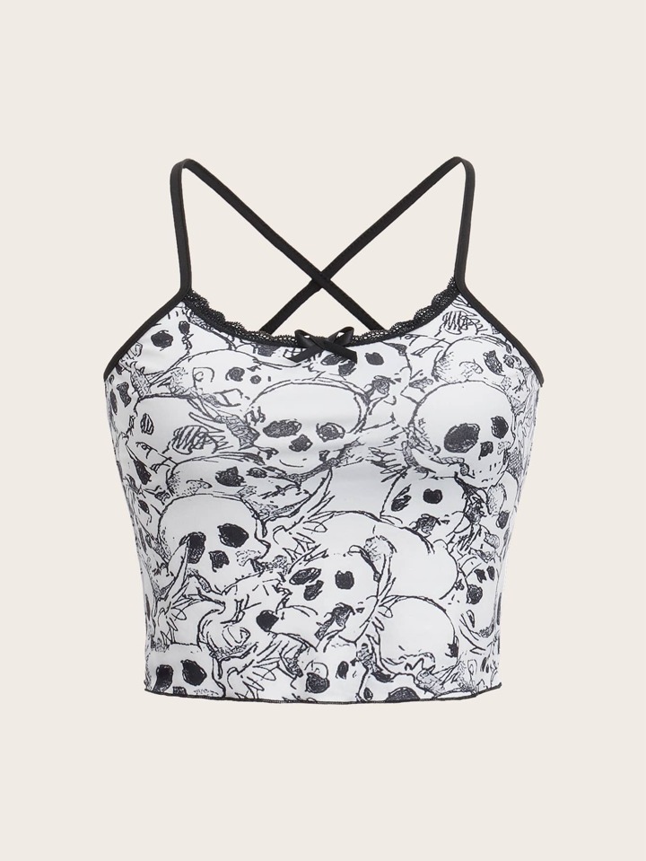Top de tirantes estampado de cráneo cruzado