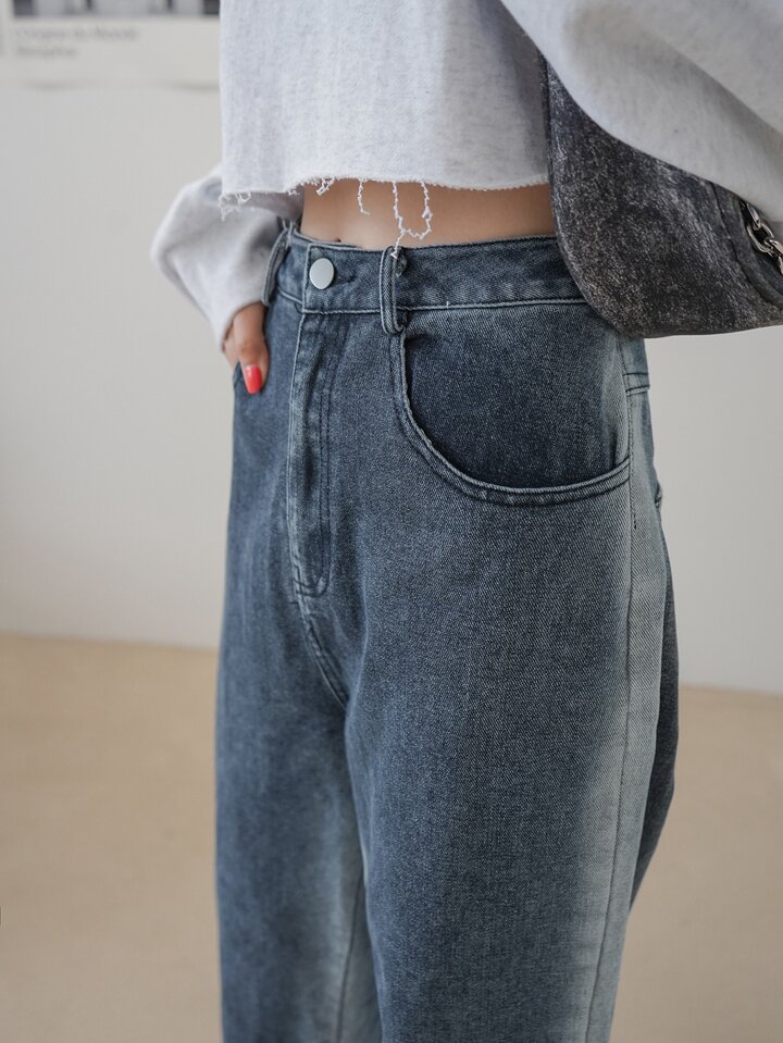 Jeans De Pierna Recta Con Bolsillos Inclinados