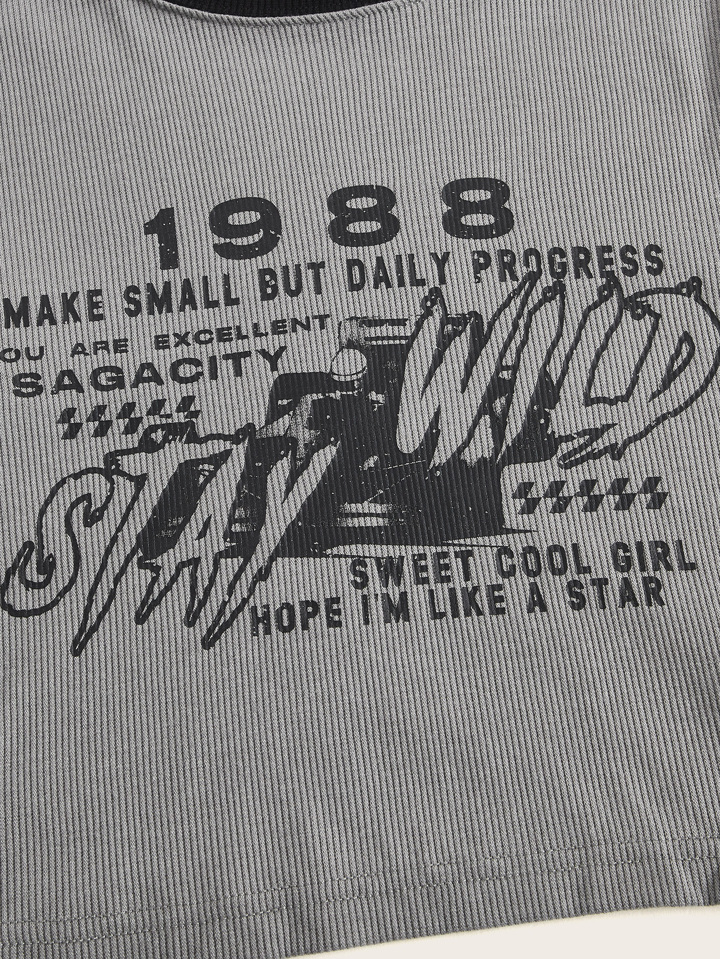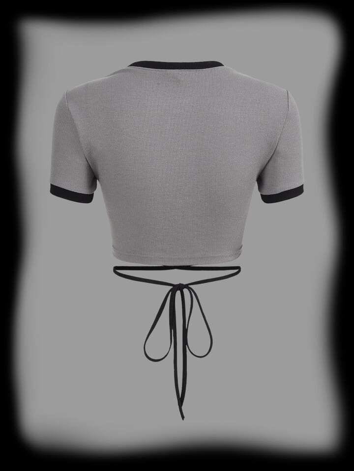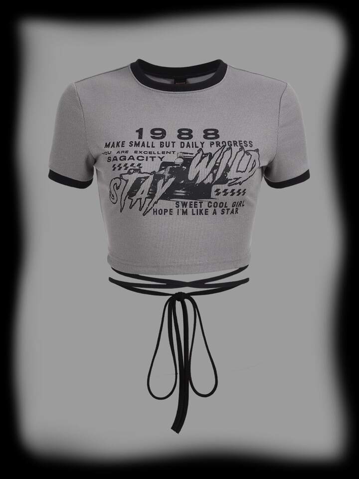 Camiseta crop con estampado de slogan con tira cruzada con cordón trasero