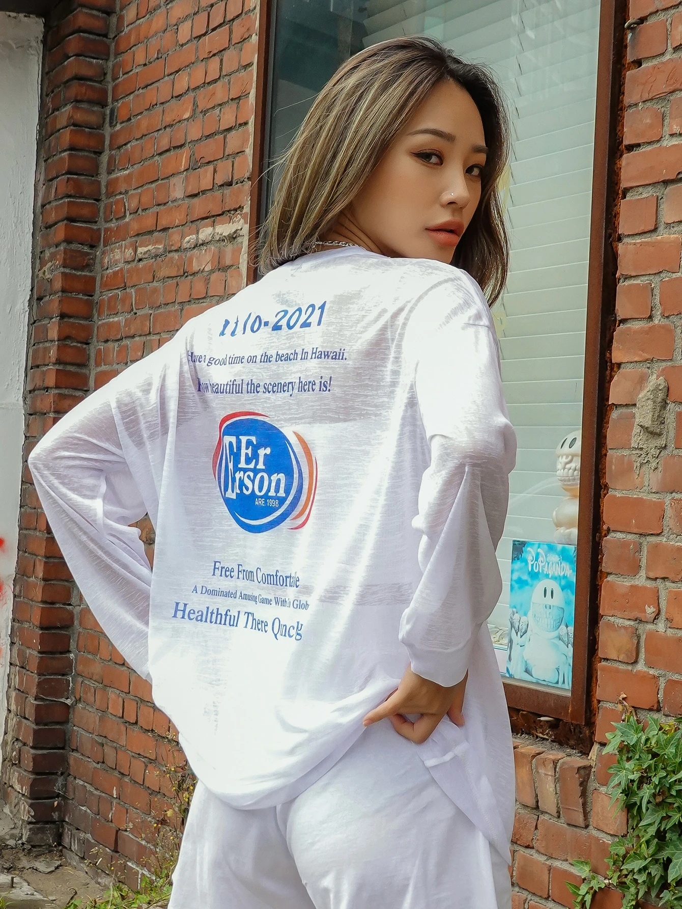 Camiseta de hombros caídos con estampado de slogan con top de tirantes