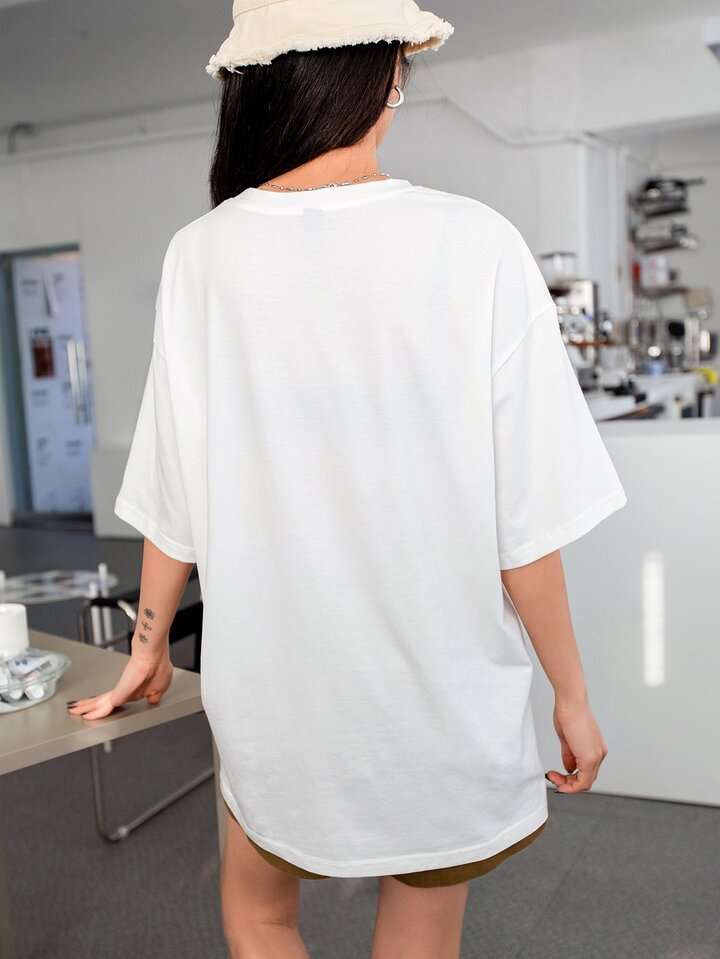 Camiseta de hombros caídos con slogan & con estampado de paisaje