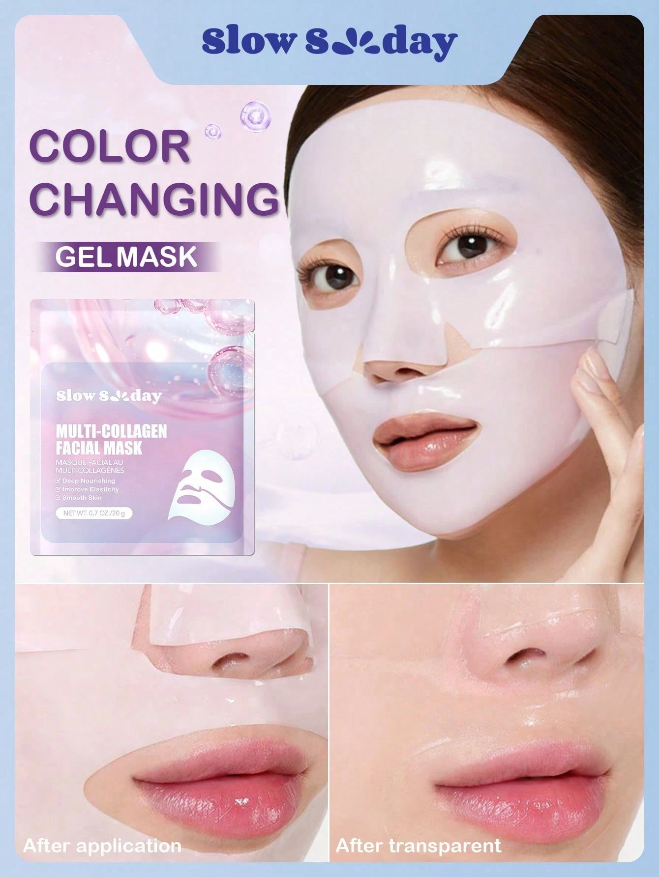Mascarilla facial de multicolágeno SlowSunday, máscara de colágeno coreana, máscara facial de colágeno en gelatina, hidratación profunda, mejora la elasticidad, suaviza la piel, K-Beauty, para el invierno, cuidado de la piel, Y2K, Año Nuevo, para el Día de San Valentín, regalo de San Valentín, regalo del Día de San Valentín, para el Ramadán, reuniones y regalos del Festival del Ramadán, ideal para fiestas