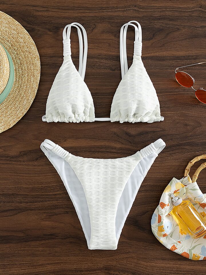 Conjunto de bikini de verano con smocked triángulo y corte alto para playa