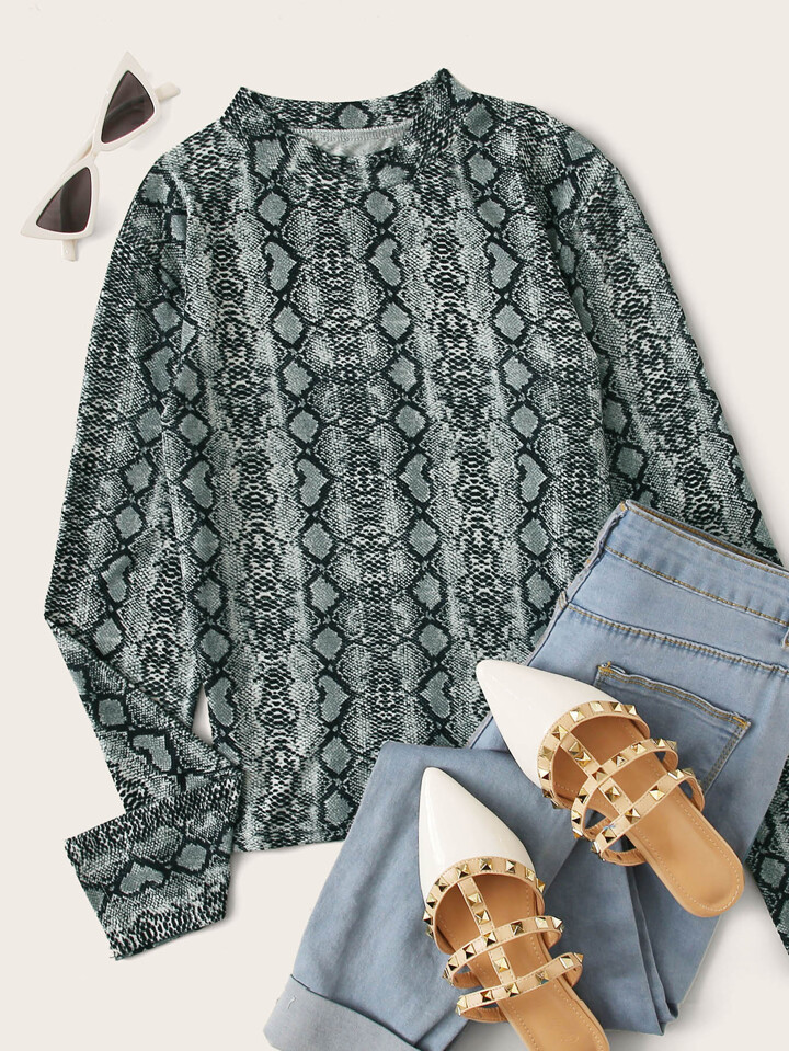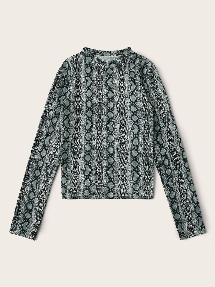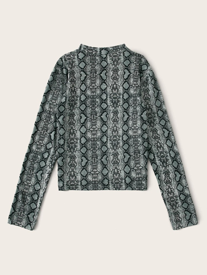 Camiseta de cuello alto con estampado de piel de serpiente