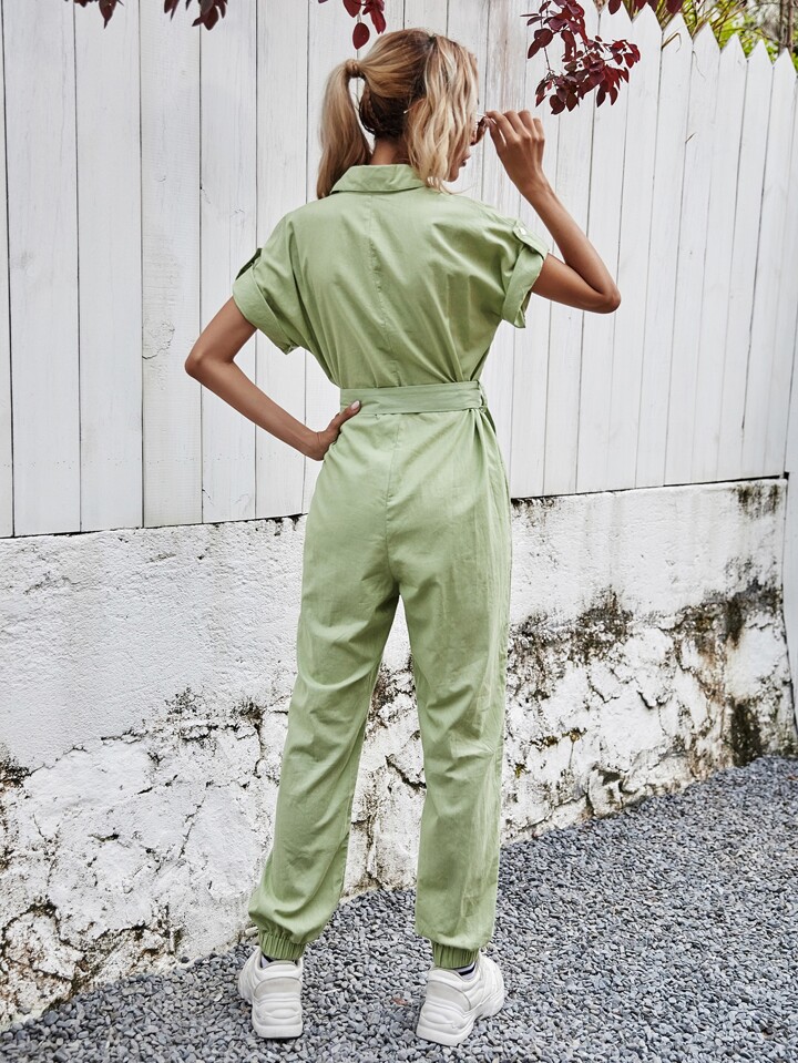 Mono camisero unicolor con cinturón con bolsillo con solapa