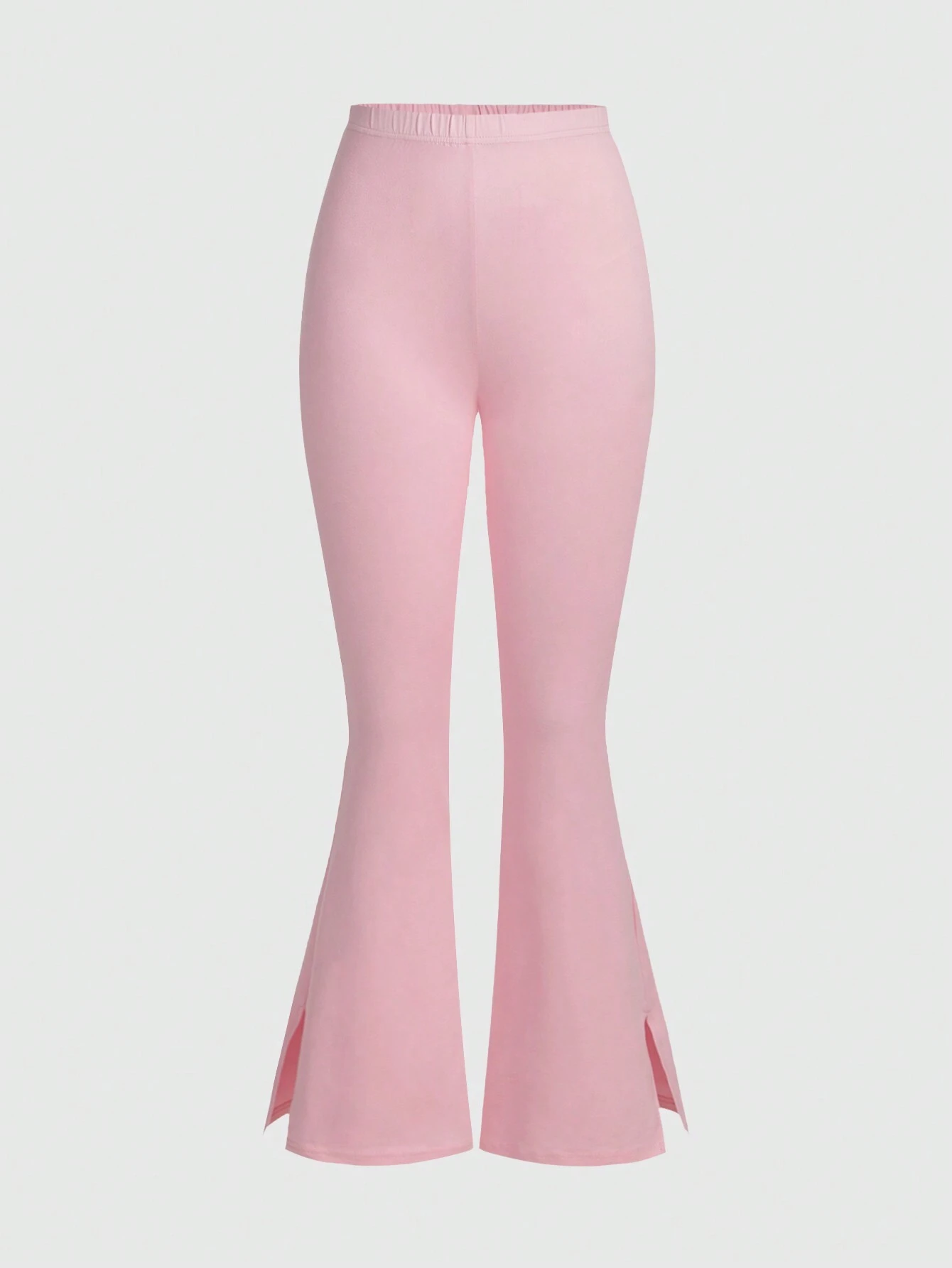 Pantalones Sólidos De Color Con Cintura Alta Y Aberturas Flair Y Banda Elástica En La Cintura
