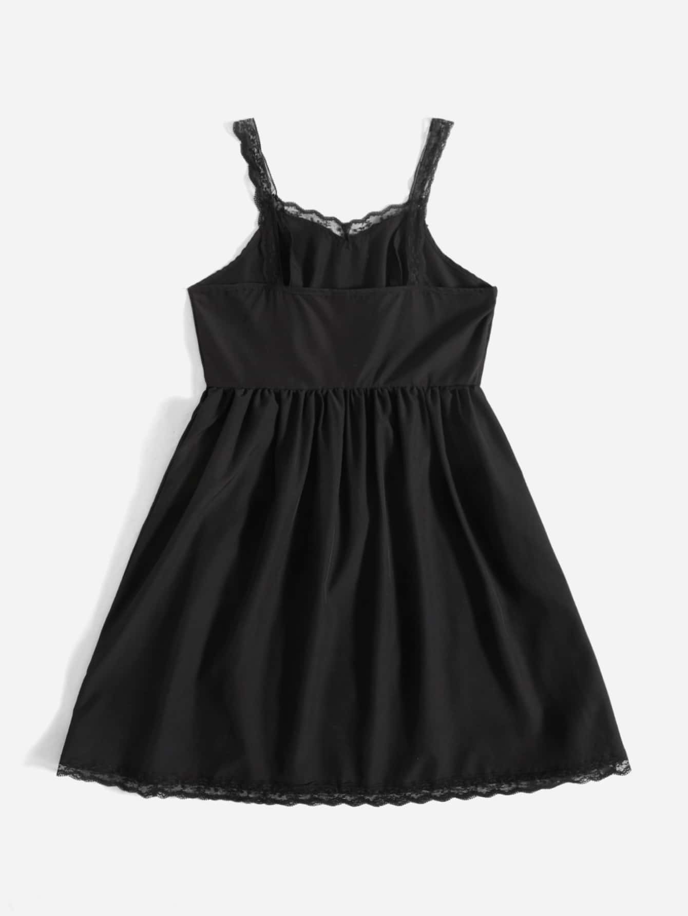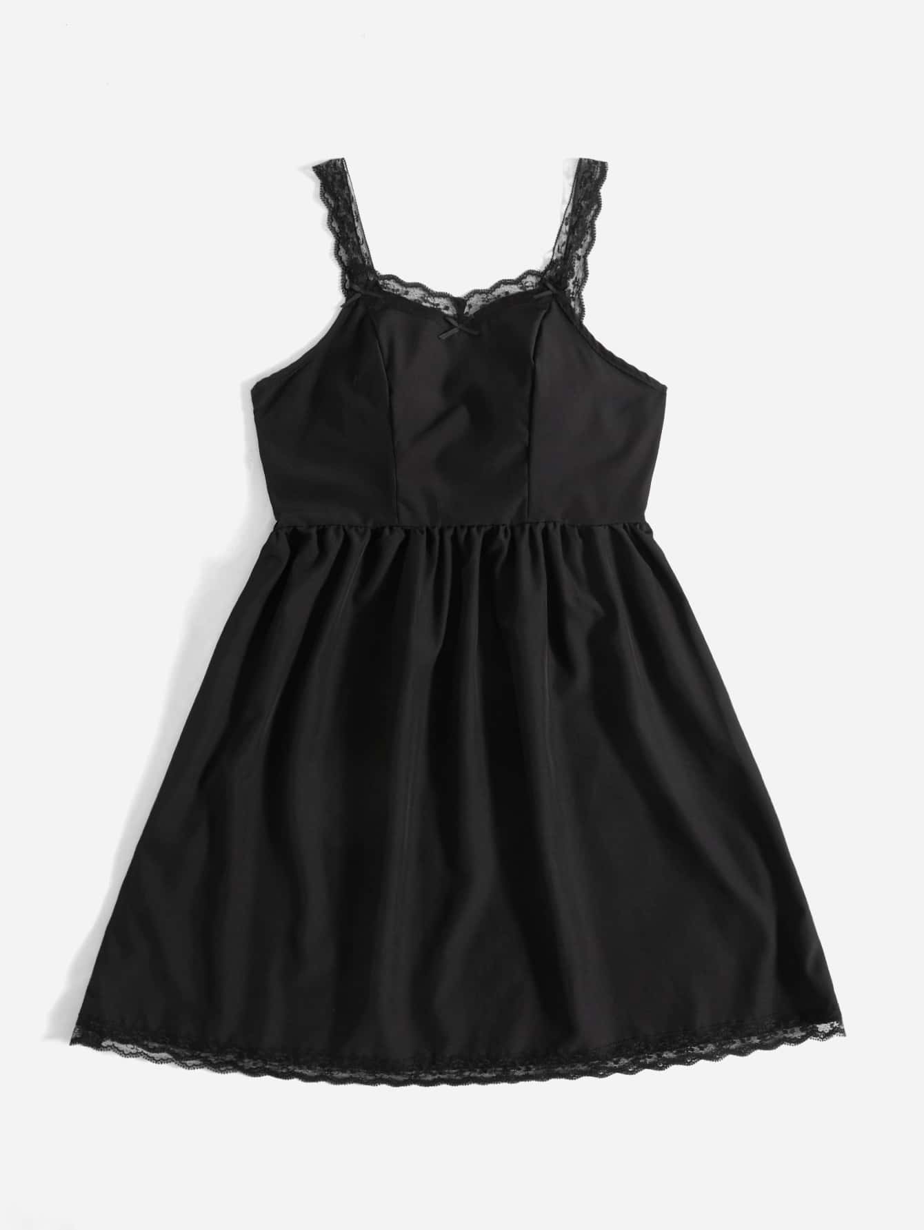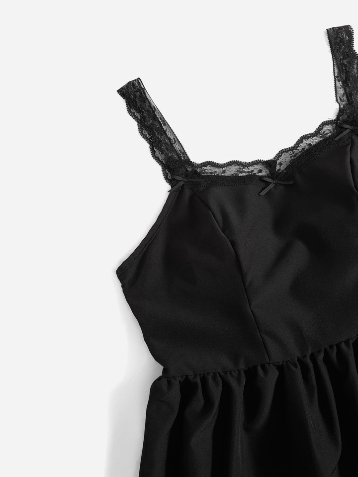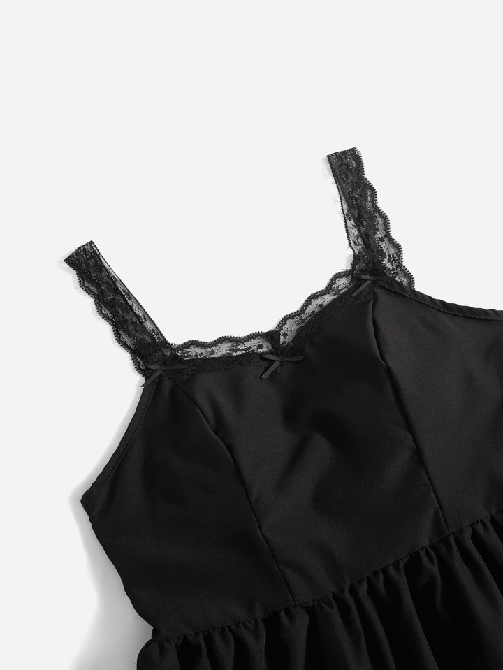 Vestido de tirantes unicolor con encaje en contraste con lazo