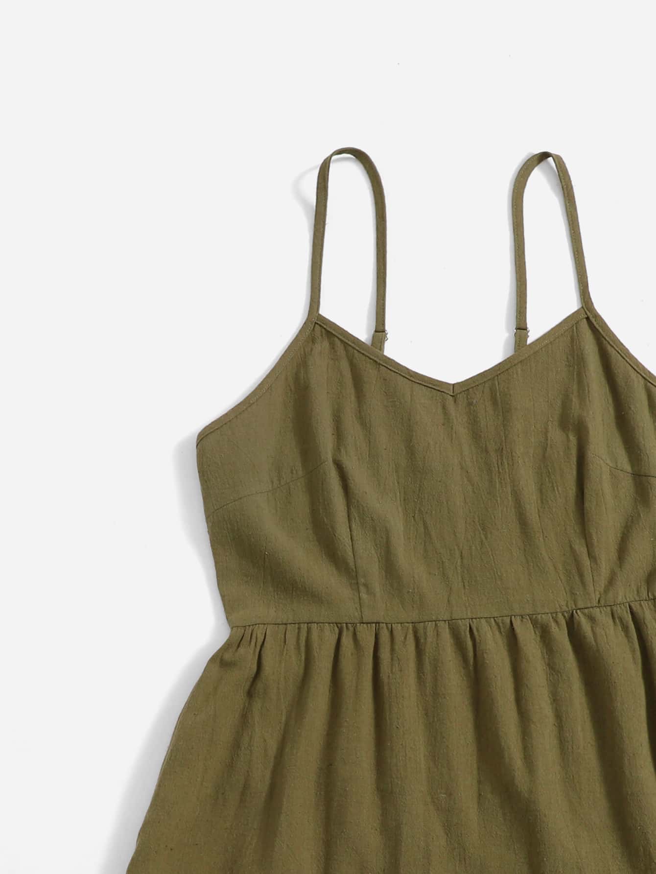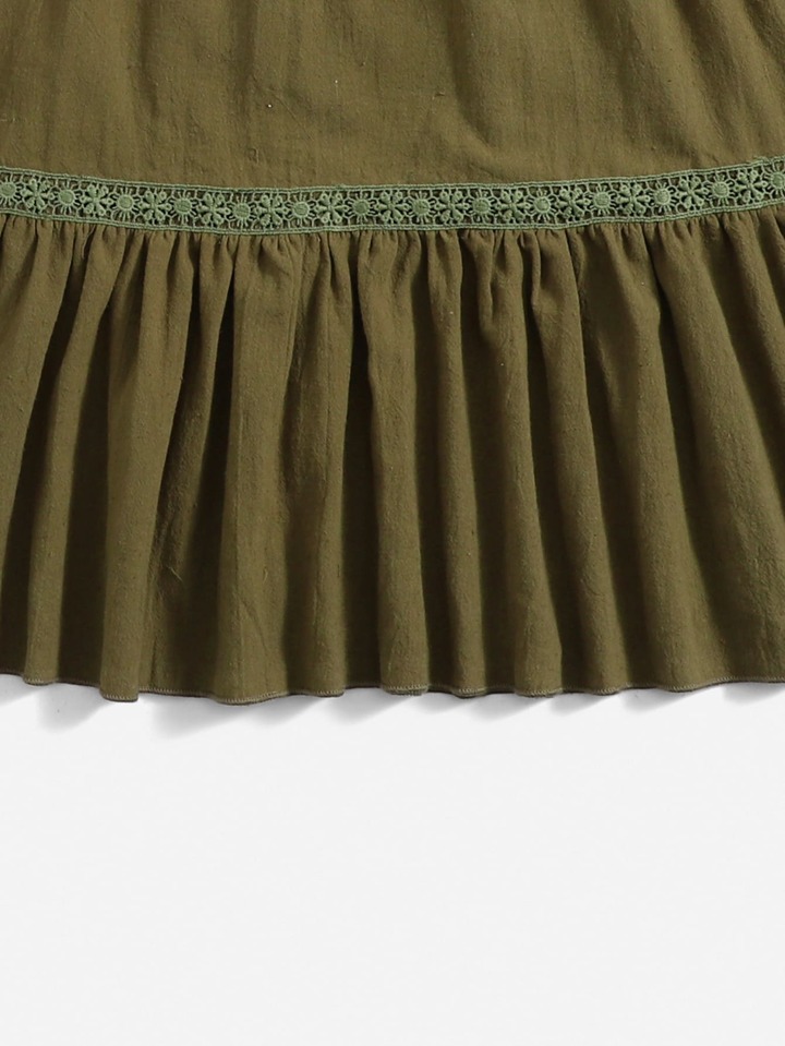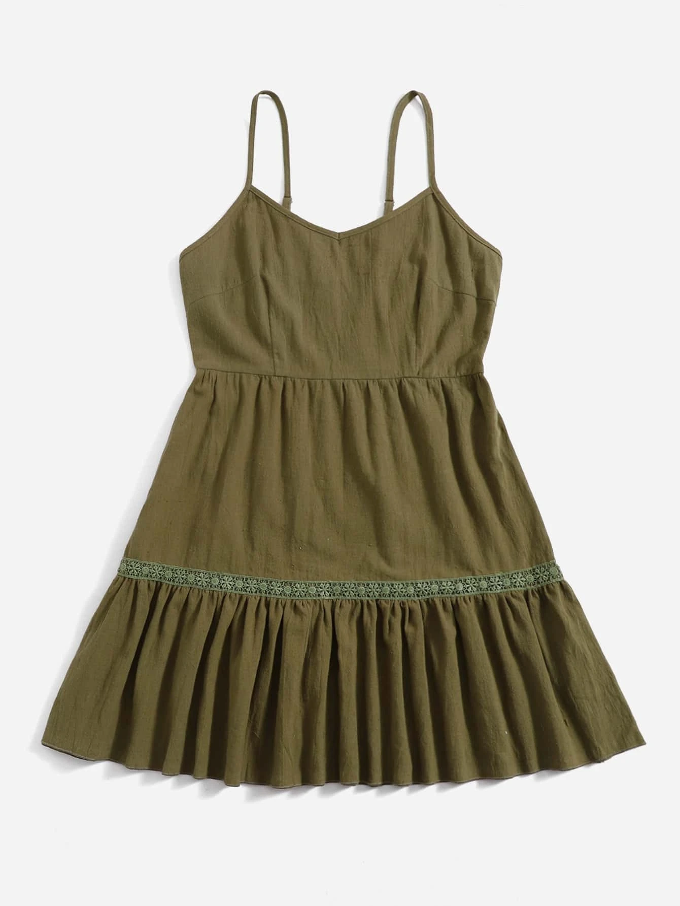Vestido de tirantes unicolor con encaje en contraste bajo con fruncido