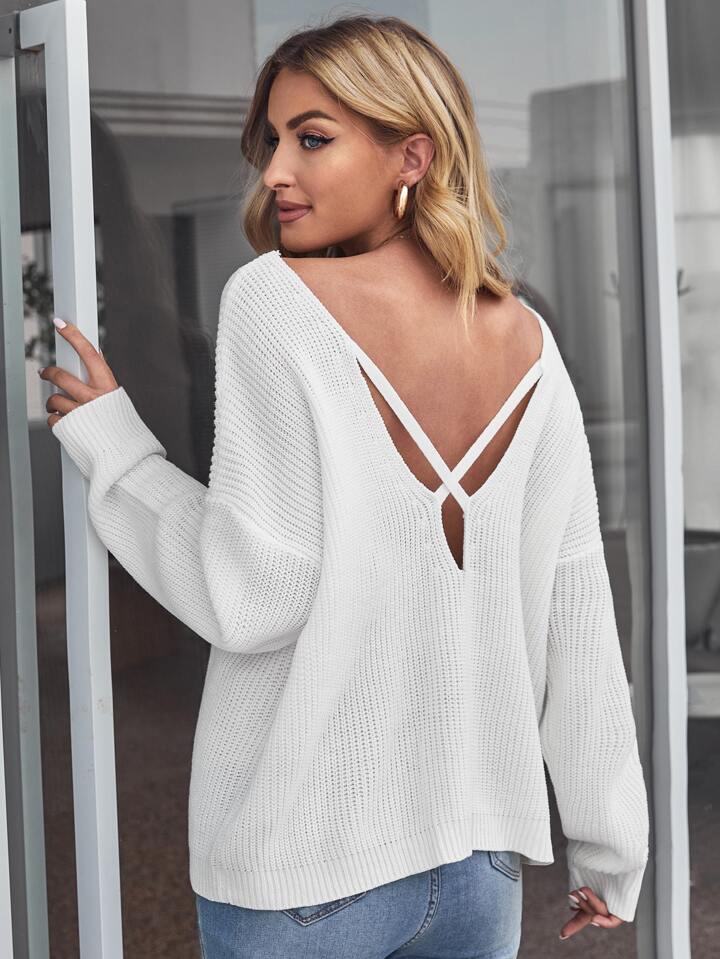 Suéter de hombros caídos unicolor con tiras cruzadas