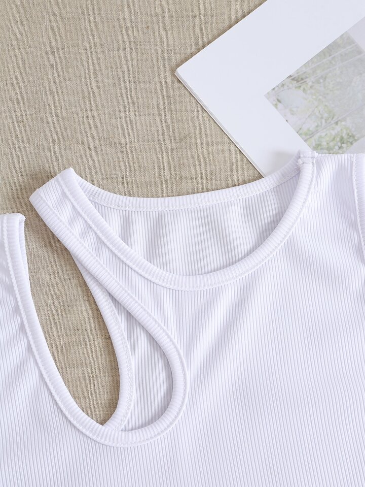 Top De Punto Acanalado Sólido Con Corte De Hombros Para Verano
