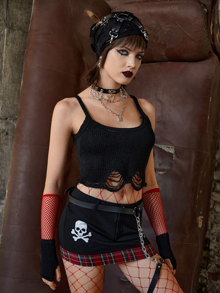 Top tejido de tirantes unicolor roto