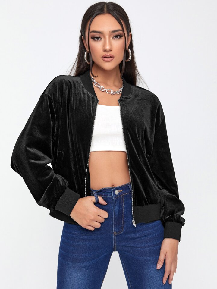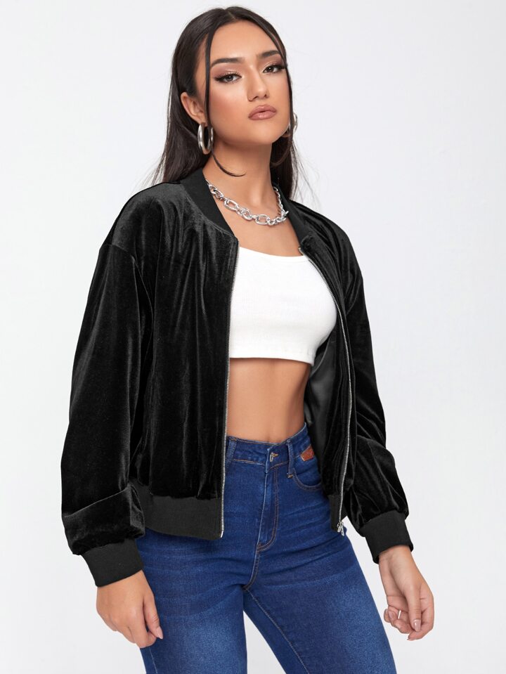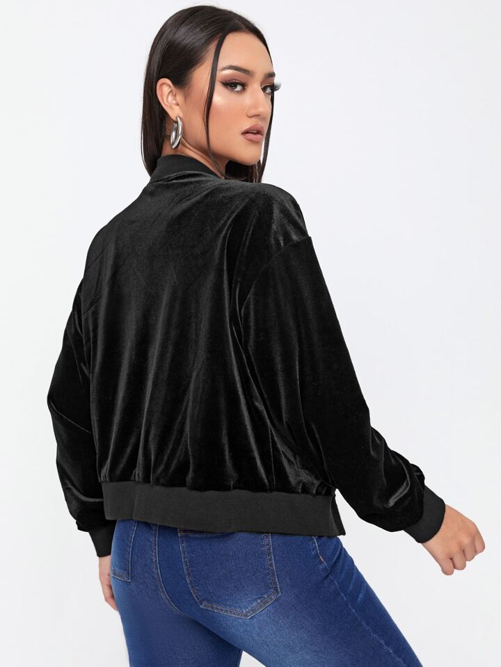 Cazadora tipo bomber unicolor de hombros caídos de terciopelo