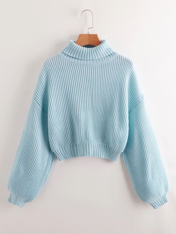 Jersey unicolor de cuello cisne de manga farol