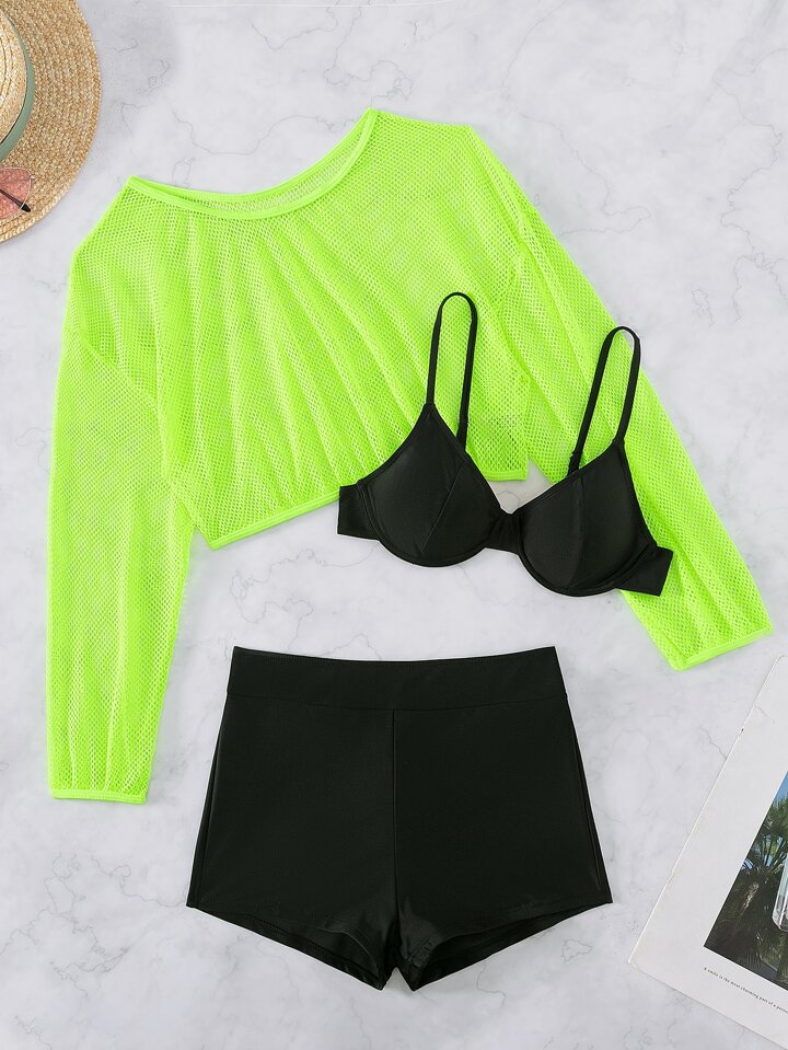 Conjunto de bikini sólido de cintura alta para playa de verano con kimono