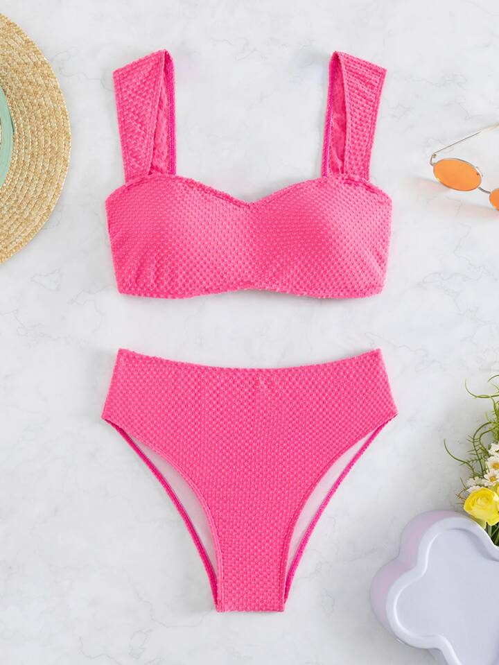 Conjunto de bikini sólido de cintura alta para playa de verano