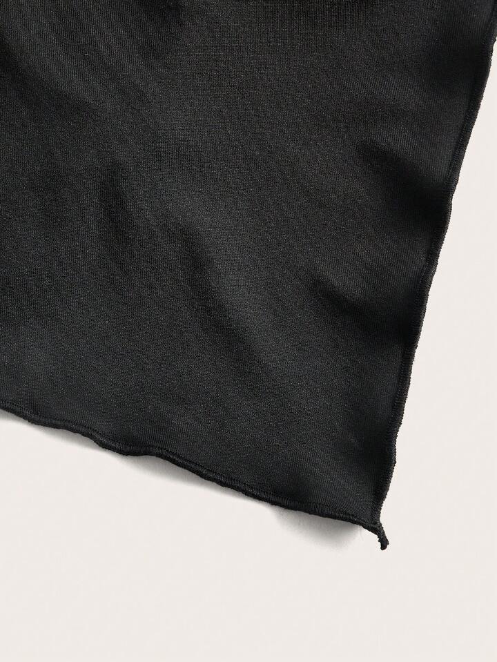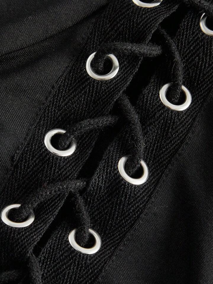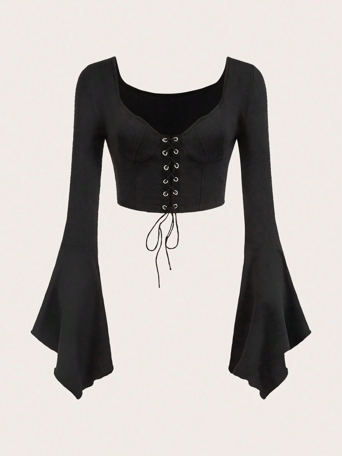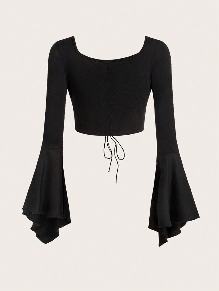 Camiseta crop unicolor con cordón delantero de manga amplia