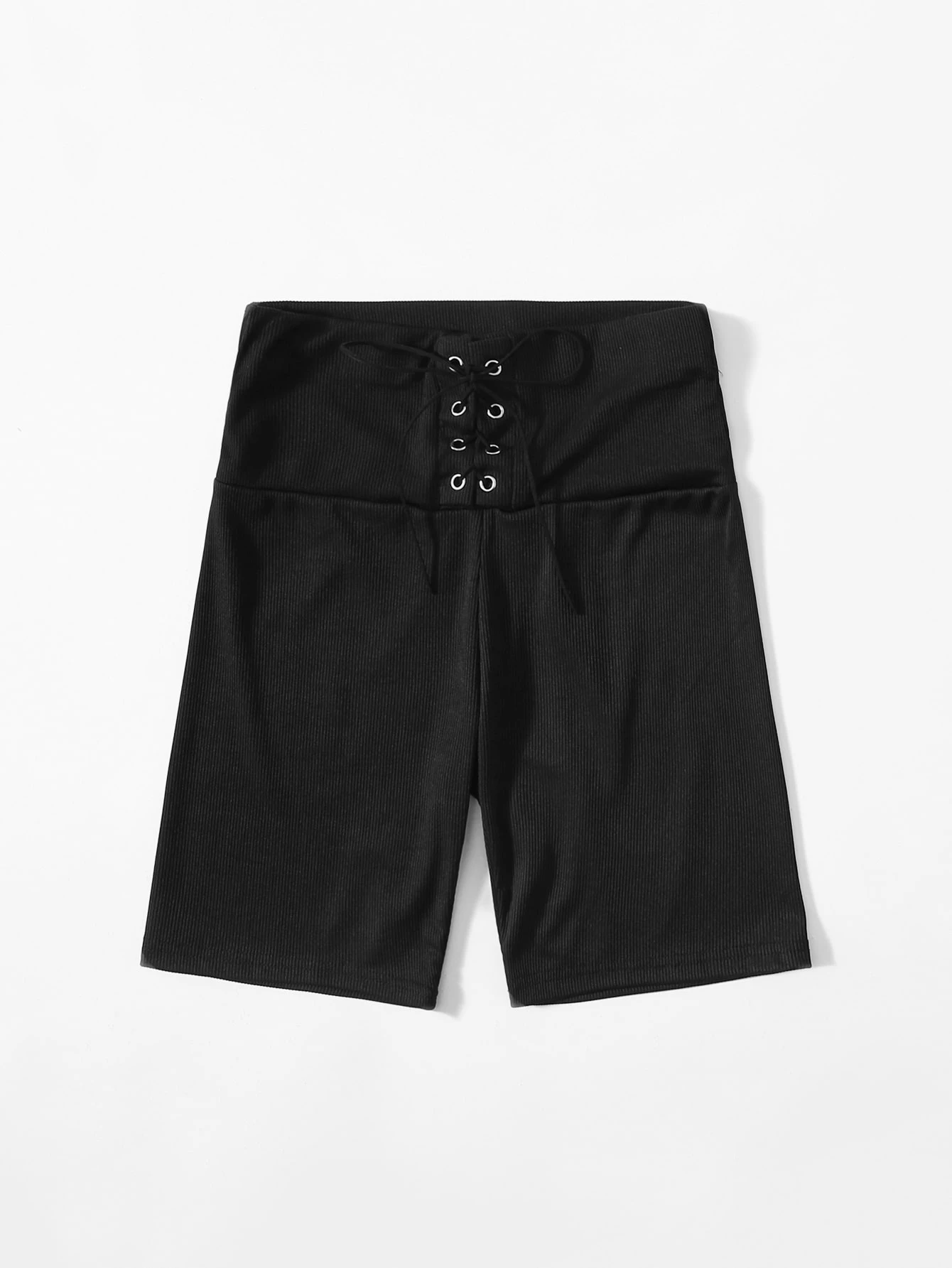 Shorts biker unicolor con cordón de canalé