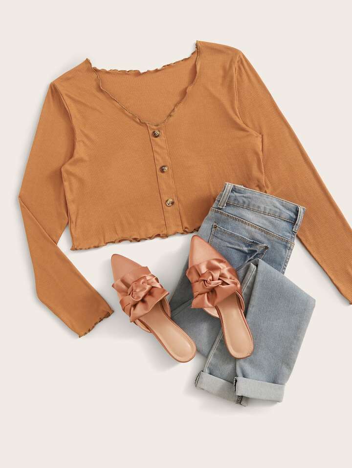 Camiseta de canalé corta ribete en forma de lechuga unicolor
