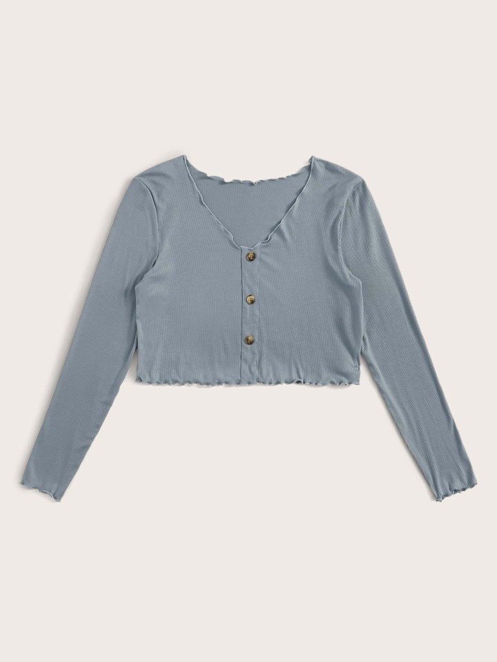 Camiseta de canalé corta ribete en forma de lechuga unicolor